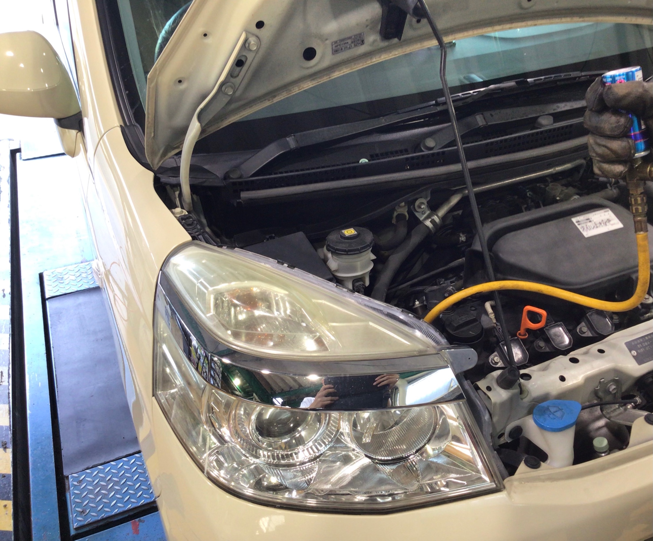 本日も、当店お馴染みエアコン添加剤の作業ですよ〜