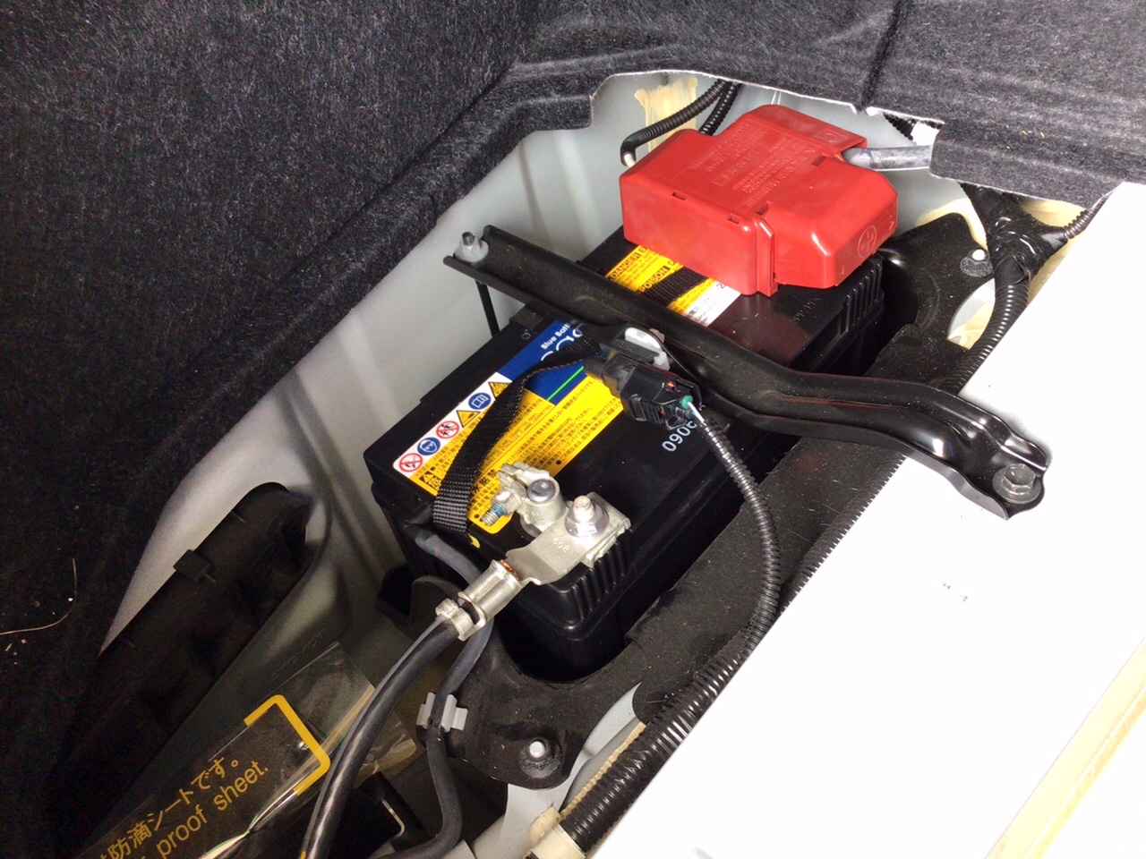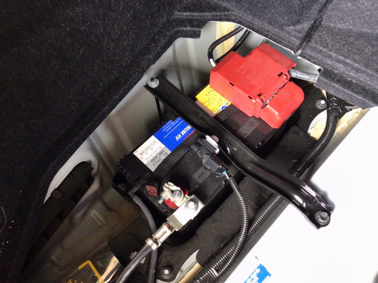 以前バッテリー交換を行ったヴォクシーハイブリッドと同じく、トランクルームに補機バッテリーが搭載されています( ^ω^ )