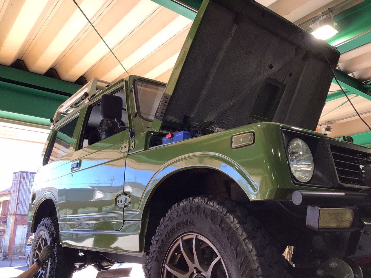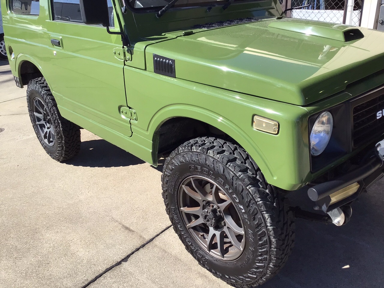 緑のボディーカラーに、リフトアップ&マッドテレーンタイヤ!