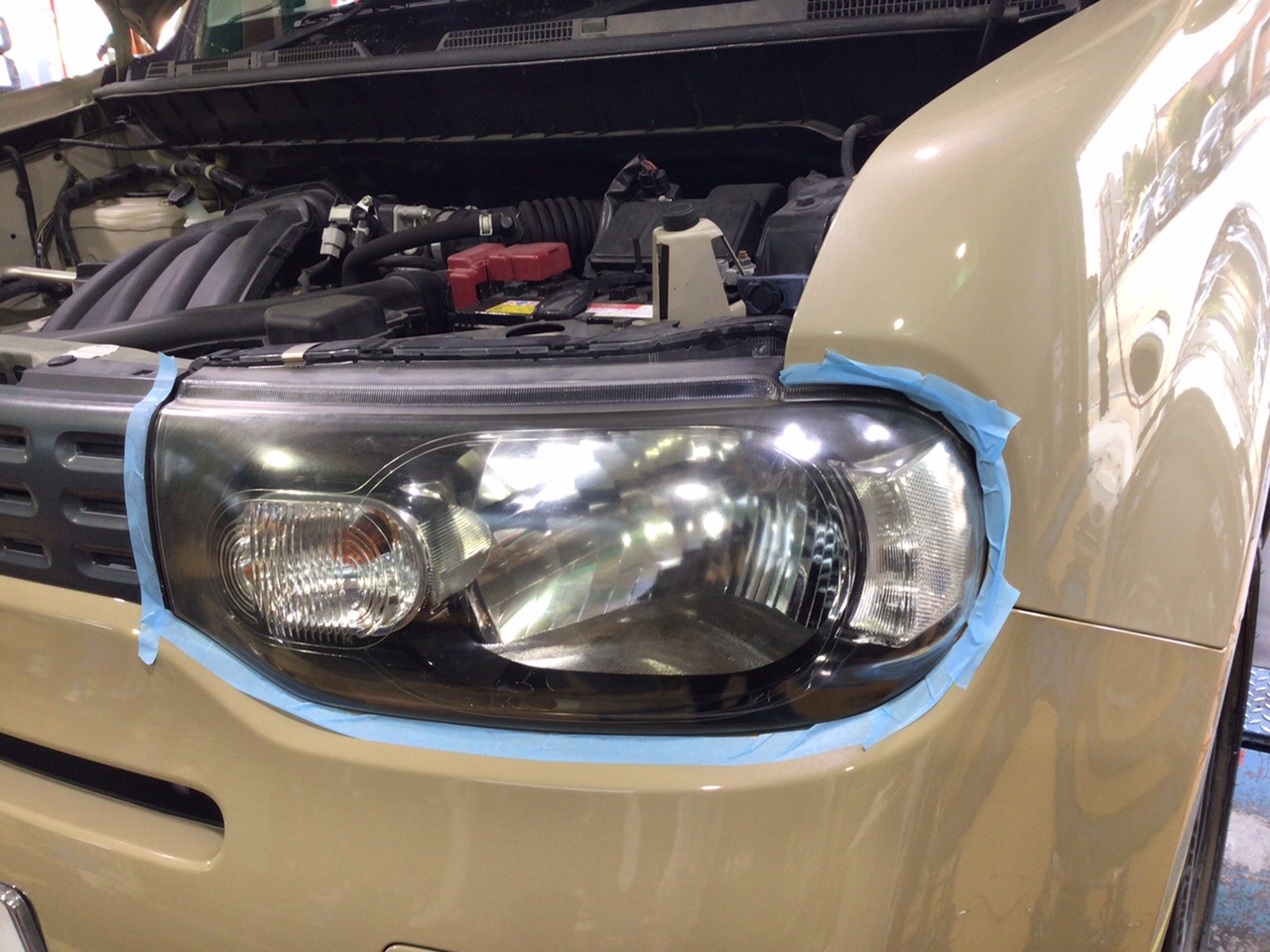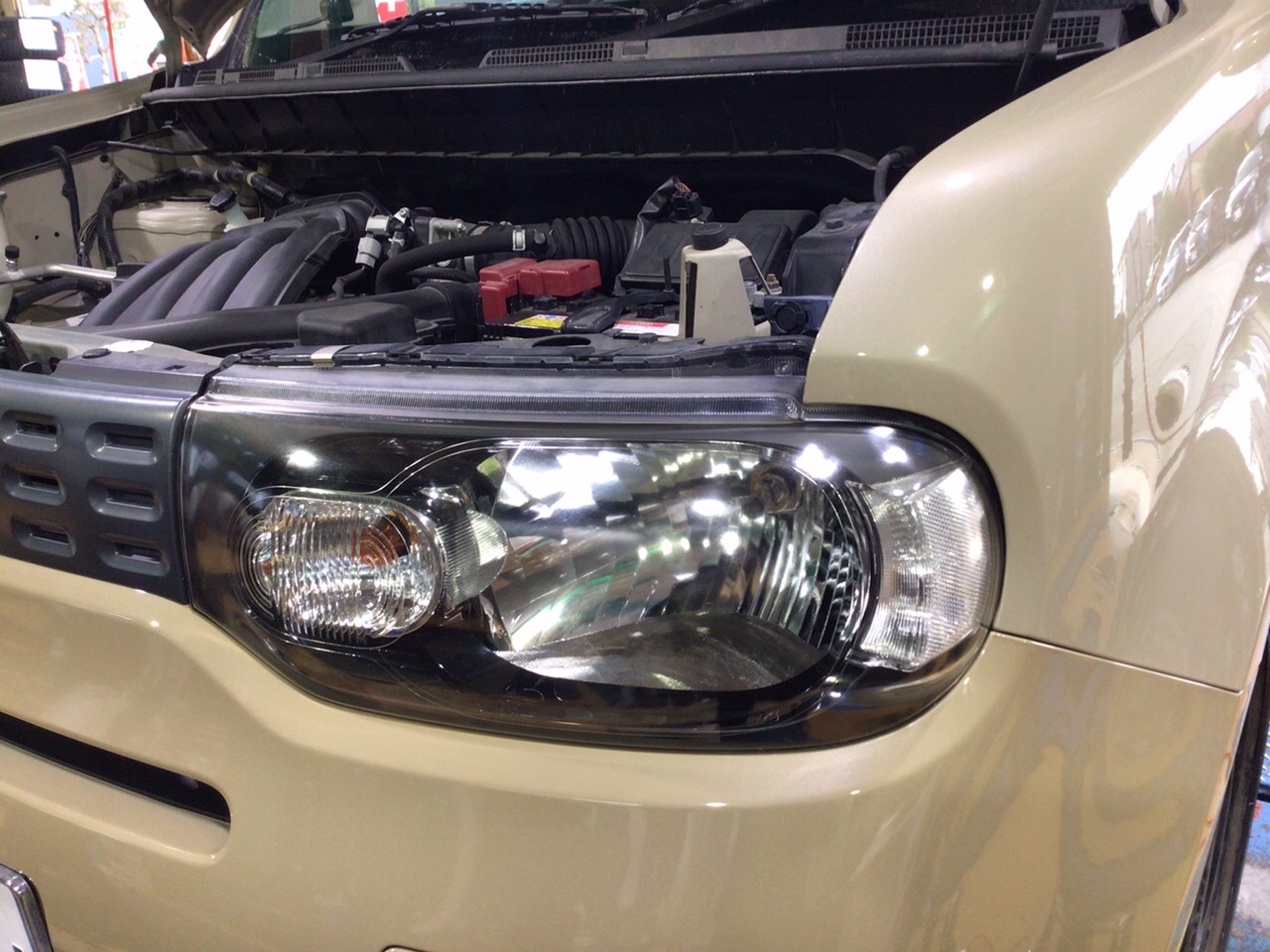 本日は、日産 キューブ(Z12)のヘッドライトコーティング作業です\(^^)/