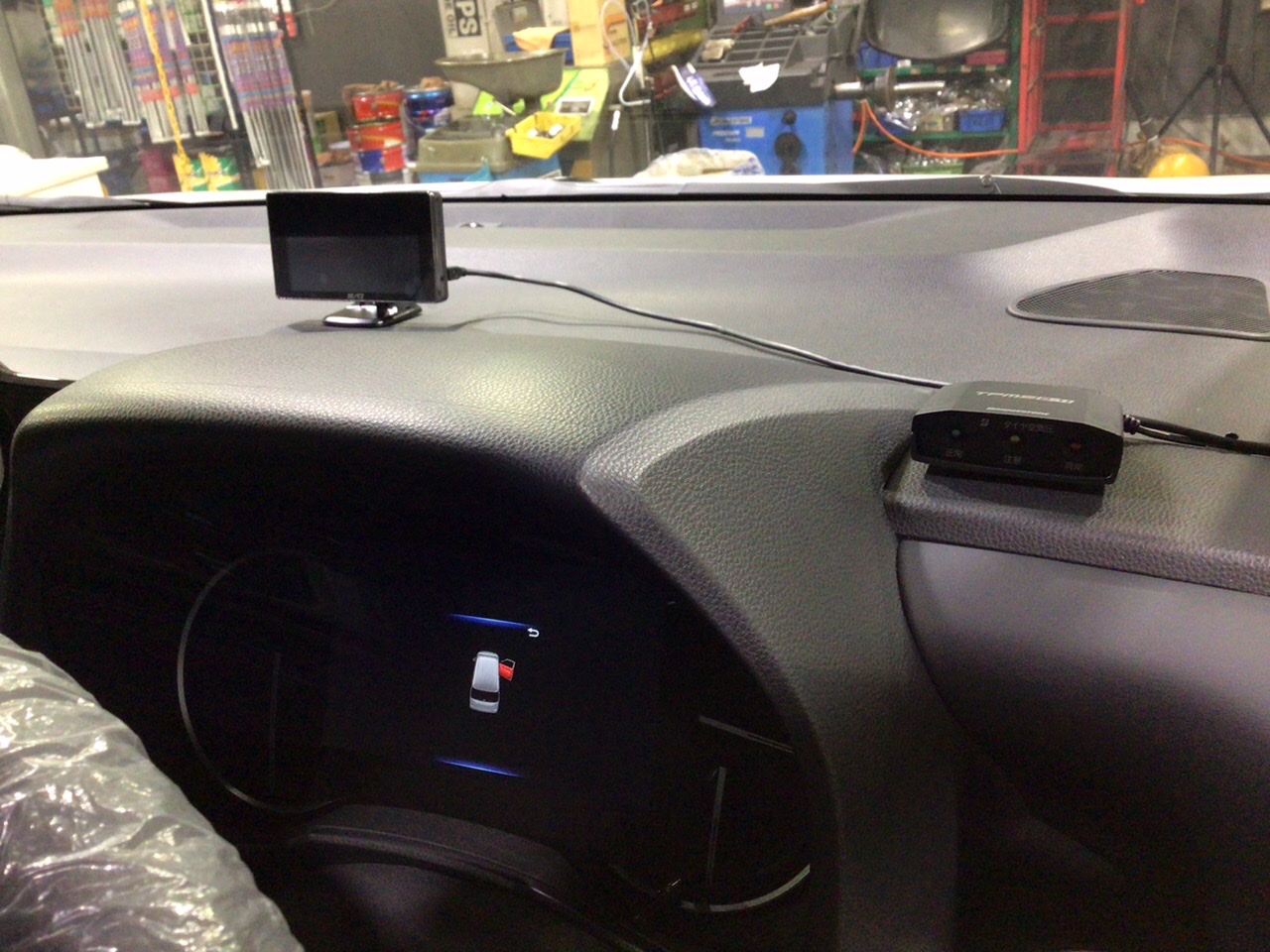空気圧センサーのモニターは、メーターパネル横に取付させて頂きました。