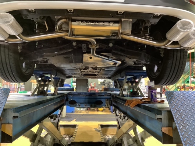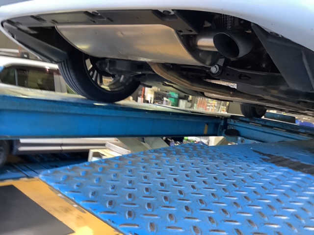 マフラー交換作業になります。