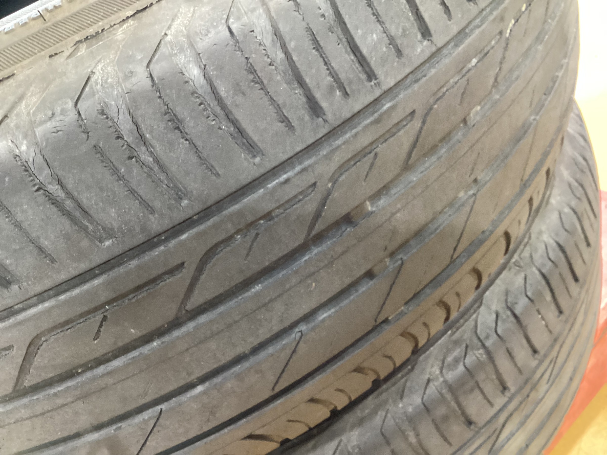 タイヤの溝はまだ少し残っていましたが、製造から6年ぐらい経っておりひび割れが出てきたことで交換させていただきました。