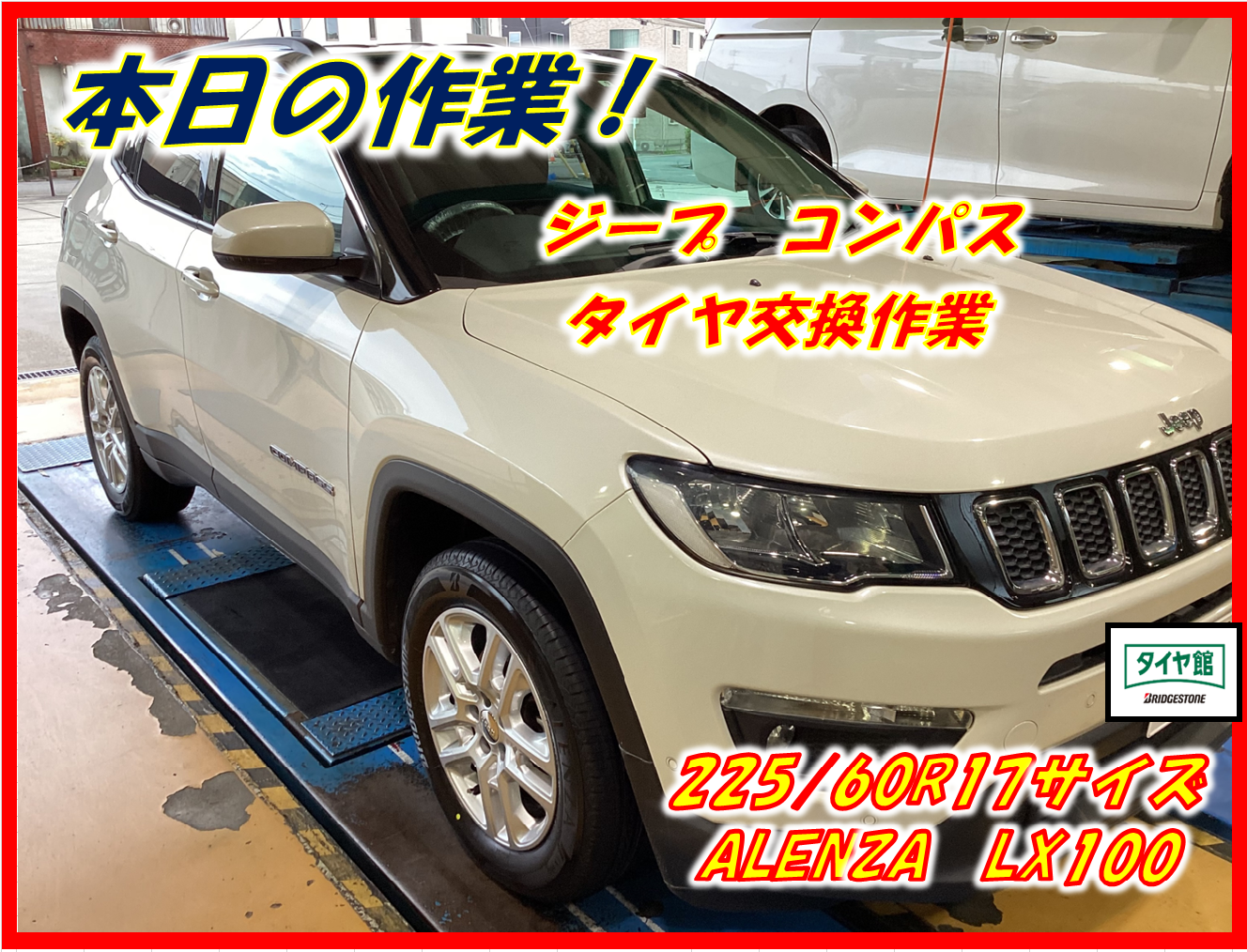 【作業事例】「ジープ・コンパス」夏用タイヤ交換作業(ブリヂストン ALENZA LX100)