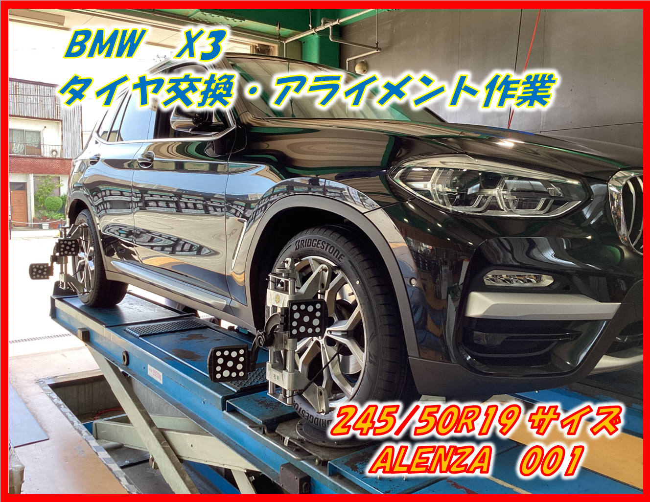 【作業事例】「BMW・X3」夏用タイヤ交換・アライメント作業(ブリヂストン ALENZA 001)