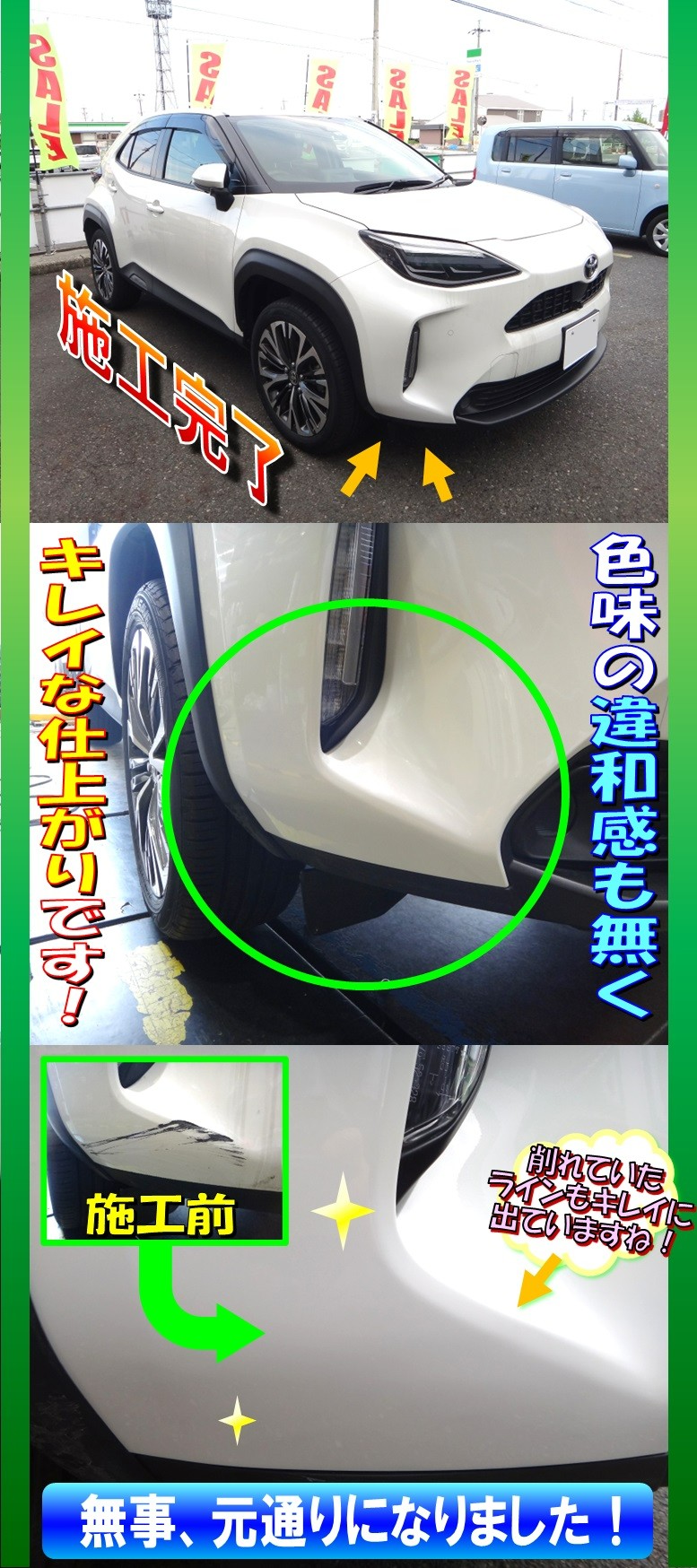 ヤリスクロス(MXPB10)「バンパーキズの板金塗装」