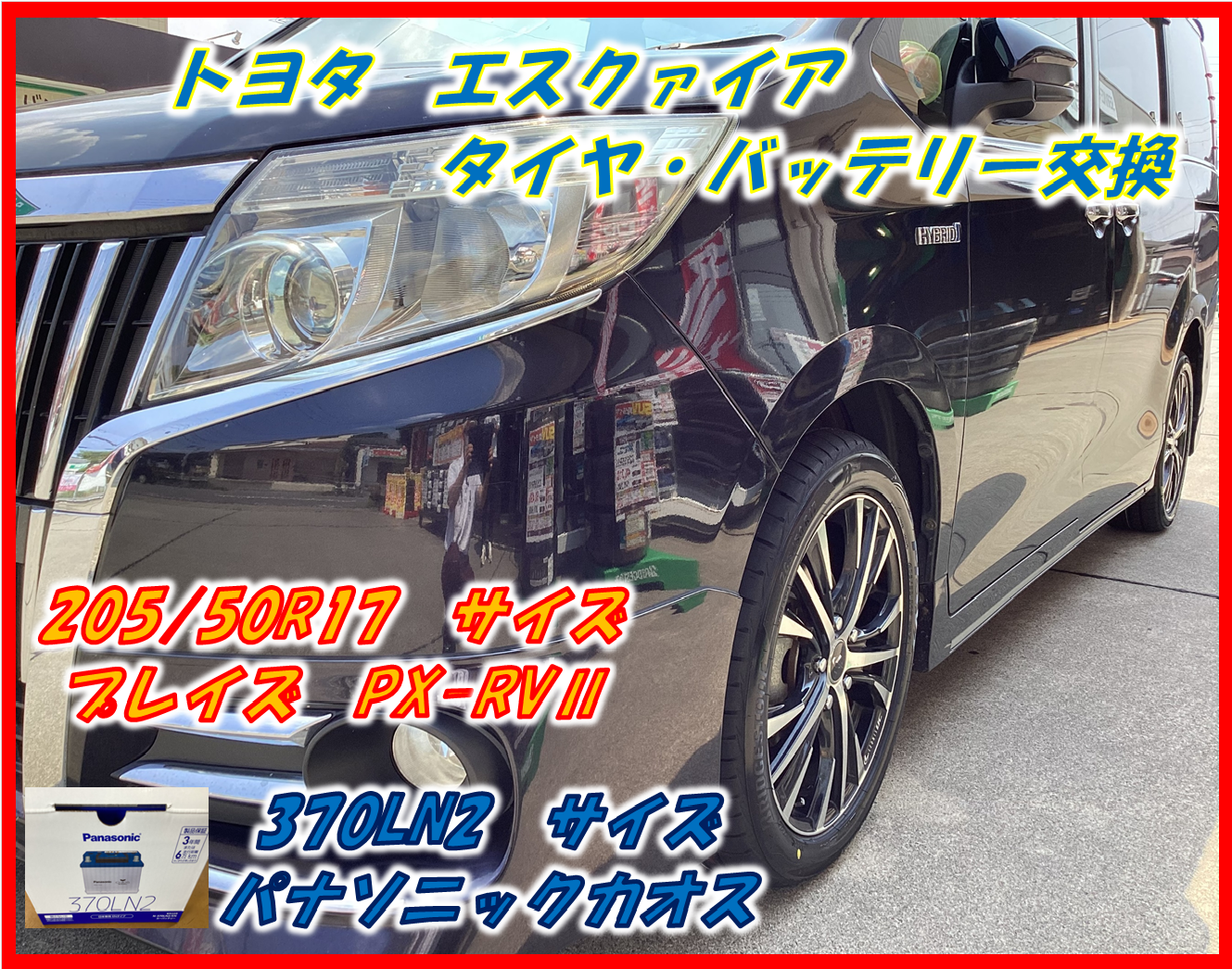 【作業事例】「トヨタ・エスクァイア」夏用タイヤ・バッテリー交換