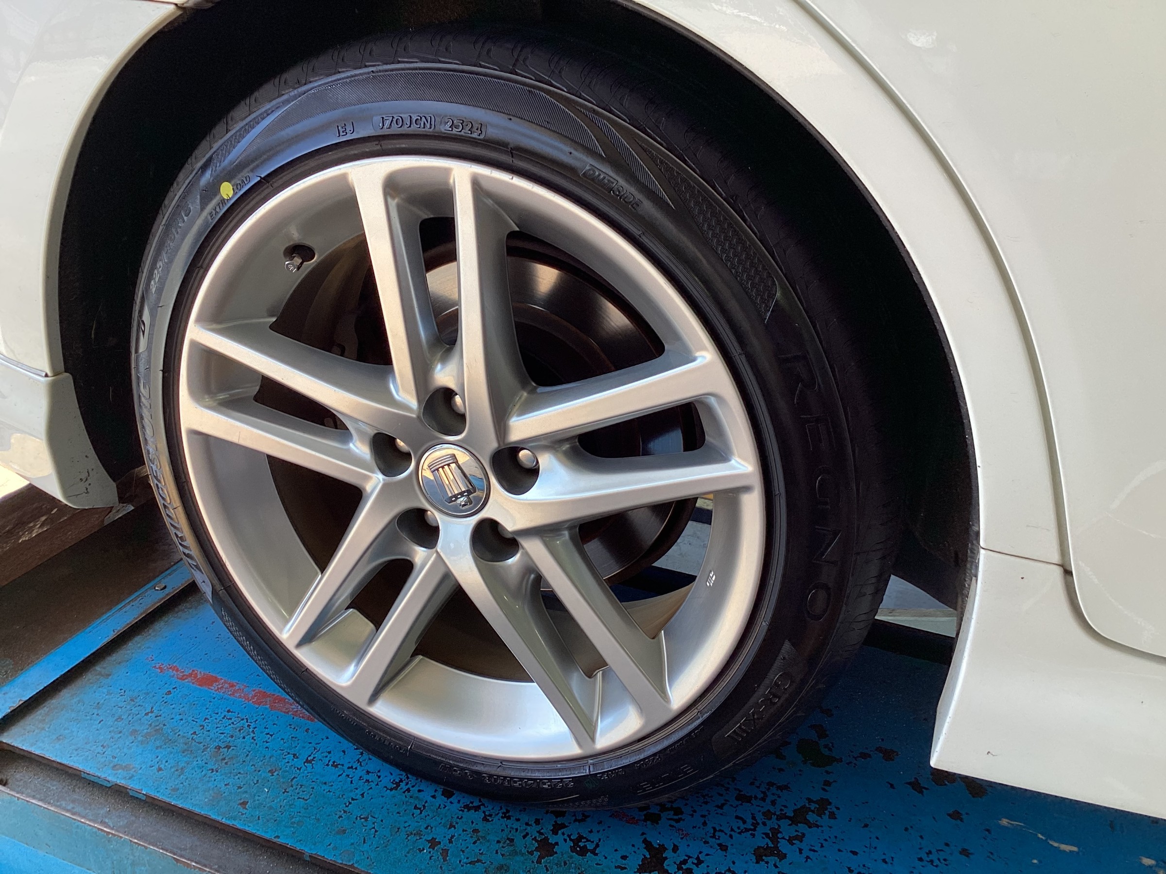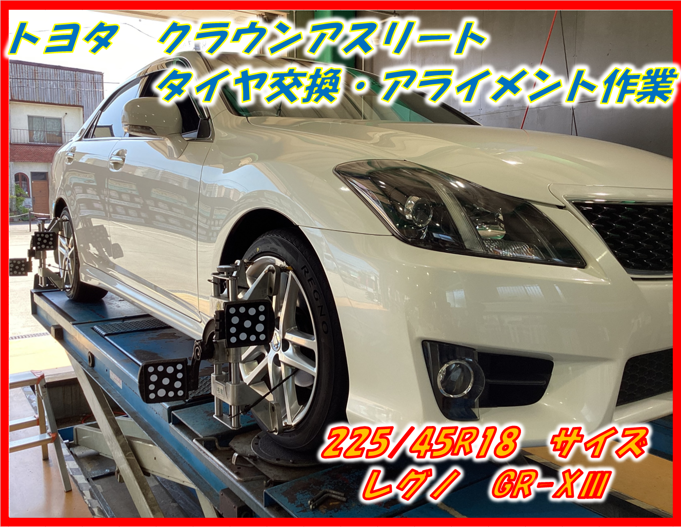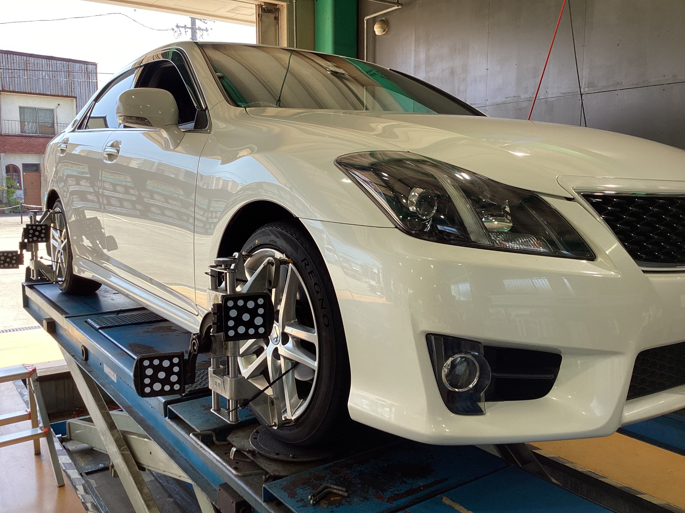 【作業事例】「トヨタ・クラウンアスリート」夏用タイヤ交換・アライメント作業(ブリヂストン レグノ GR-XⅢ)
