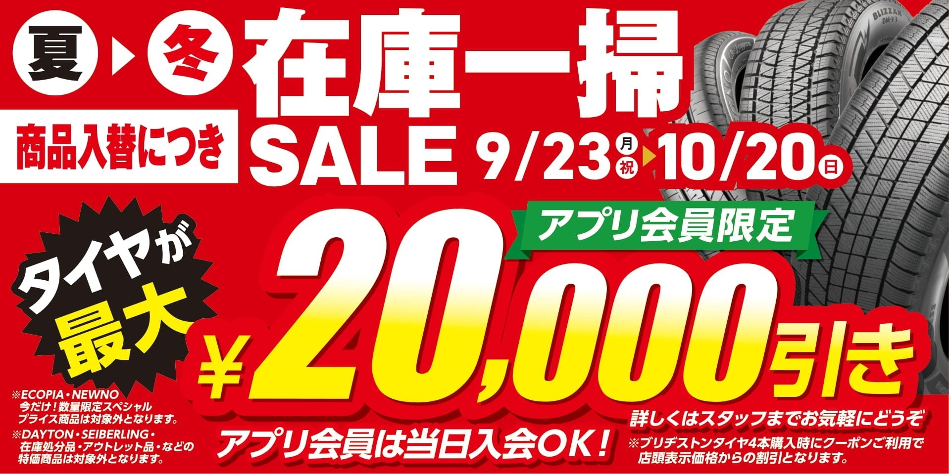 タイヤ館西尾店は、本日から10/20までの期間で「在庫一掃セール」を開催しました!