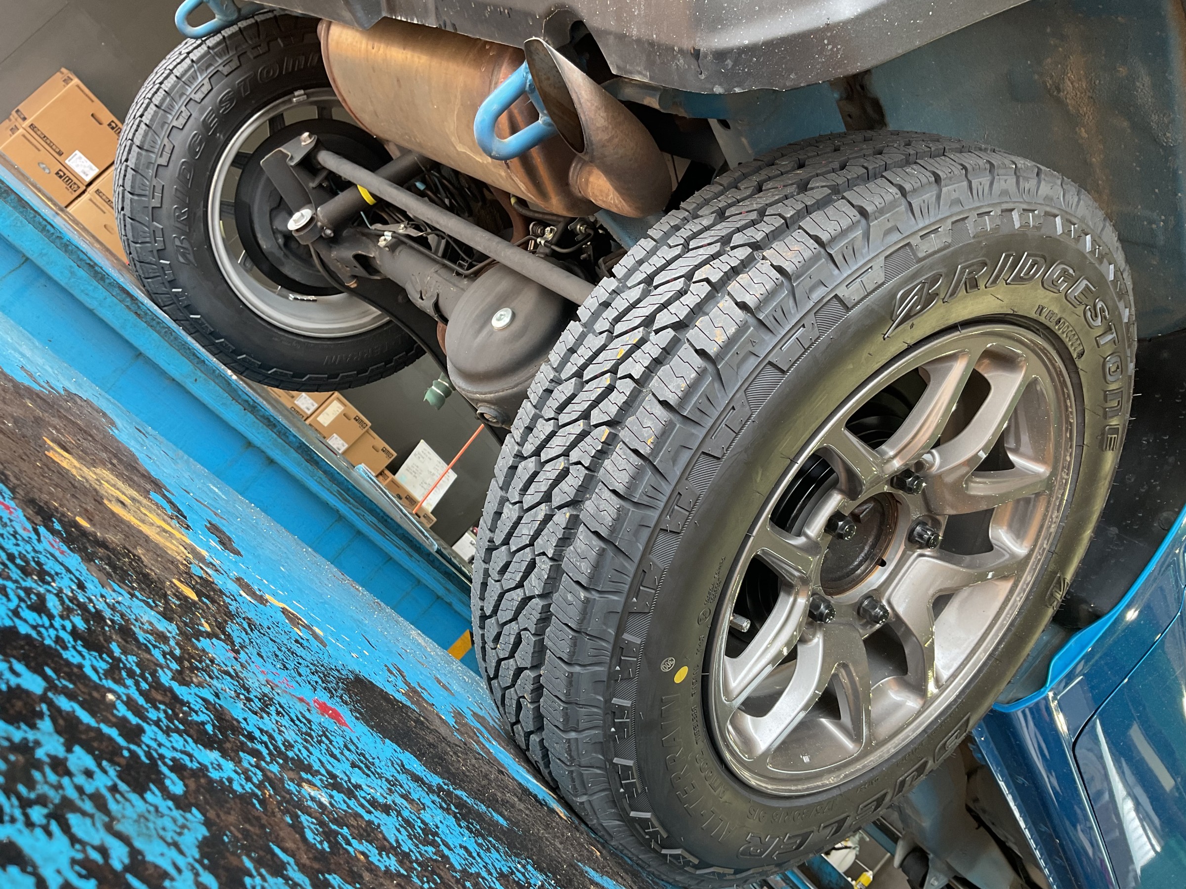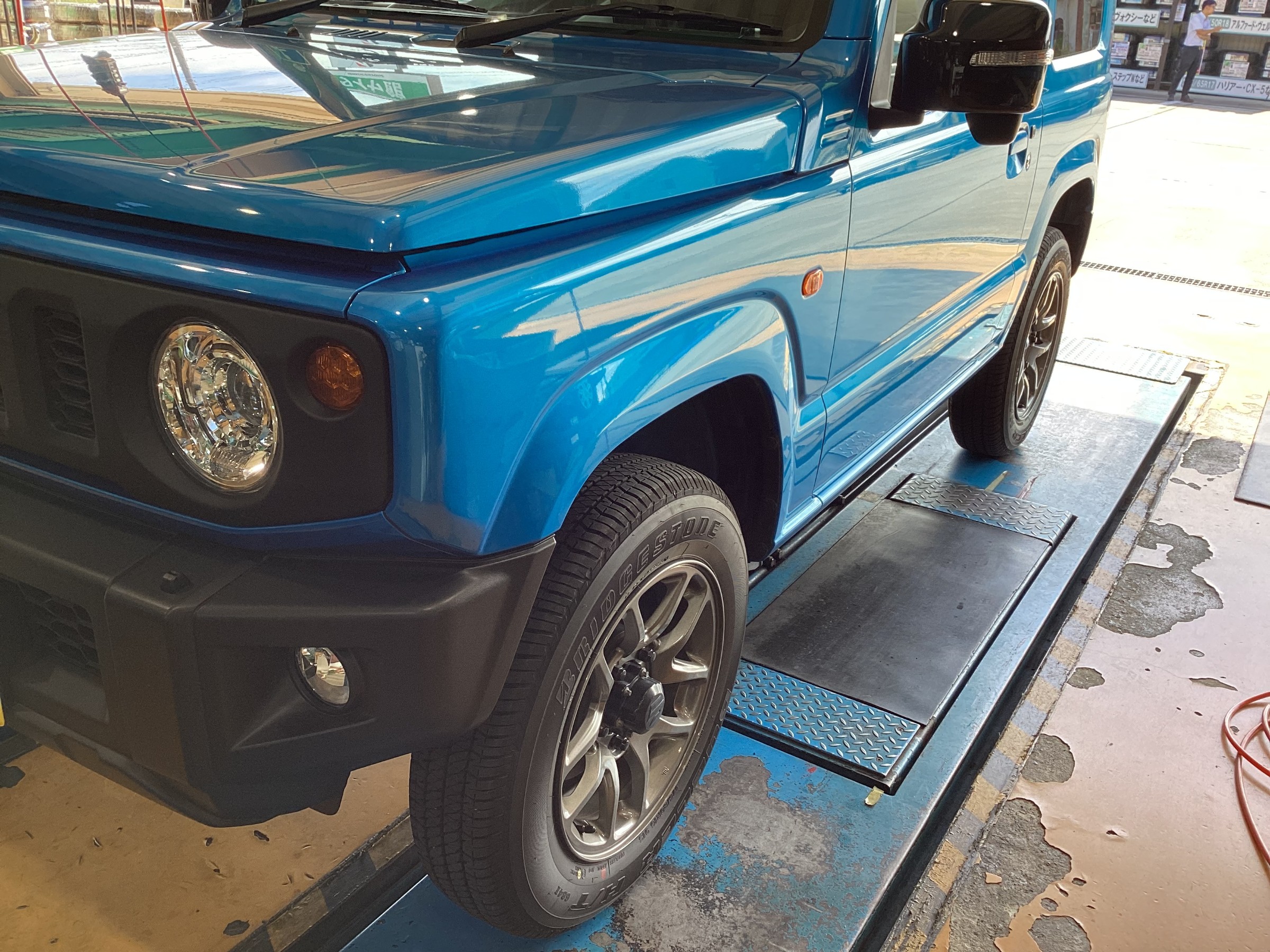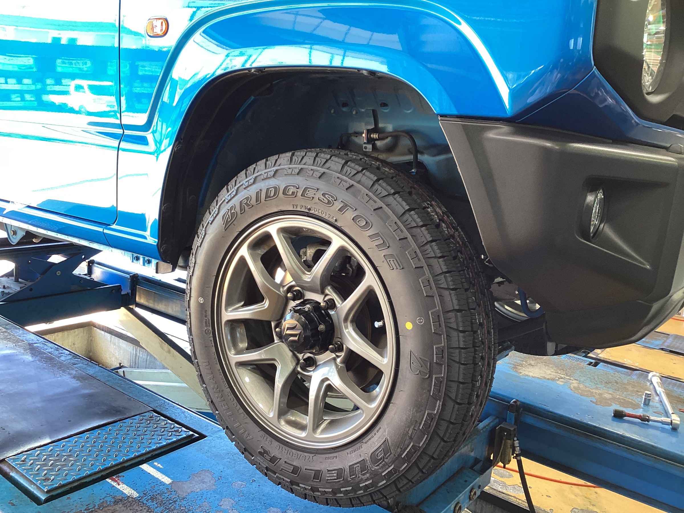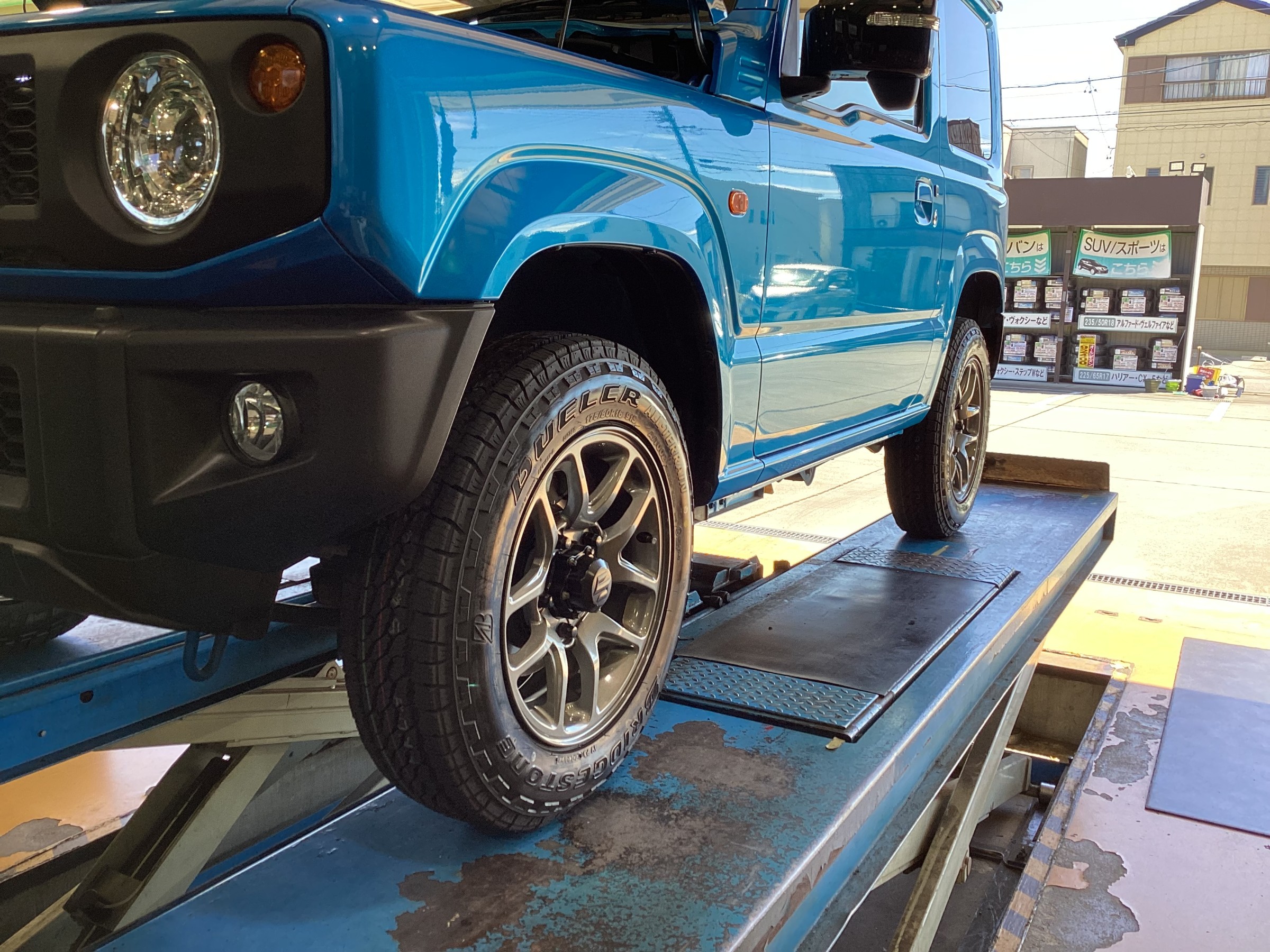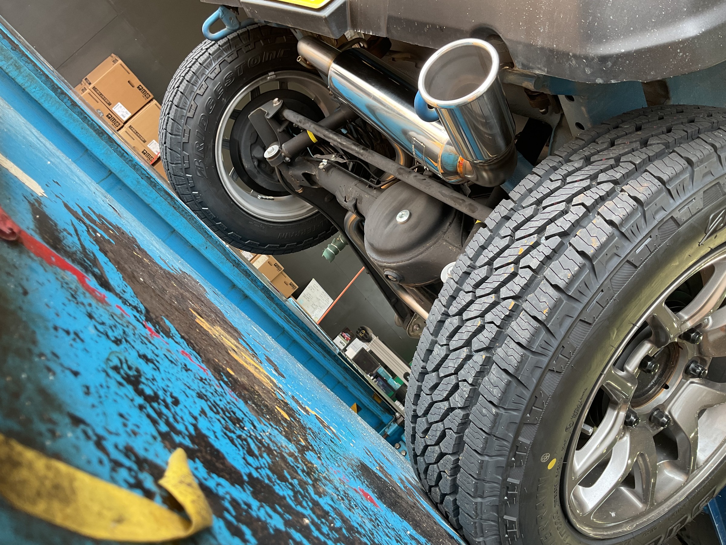【作業事例】「スズキ・ジムニーJB64W」夏用タイヤ・マフラー交換作業