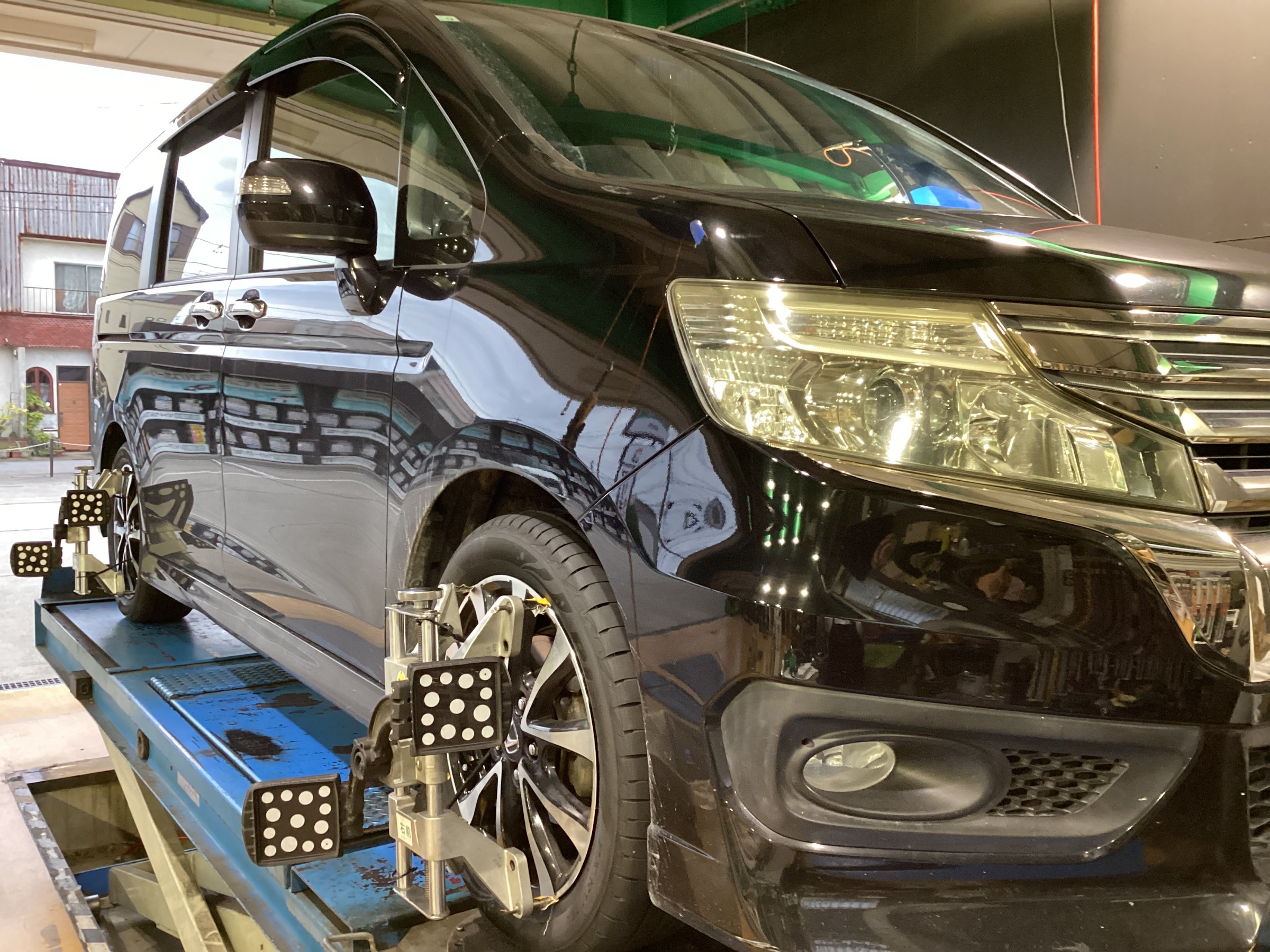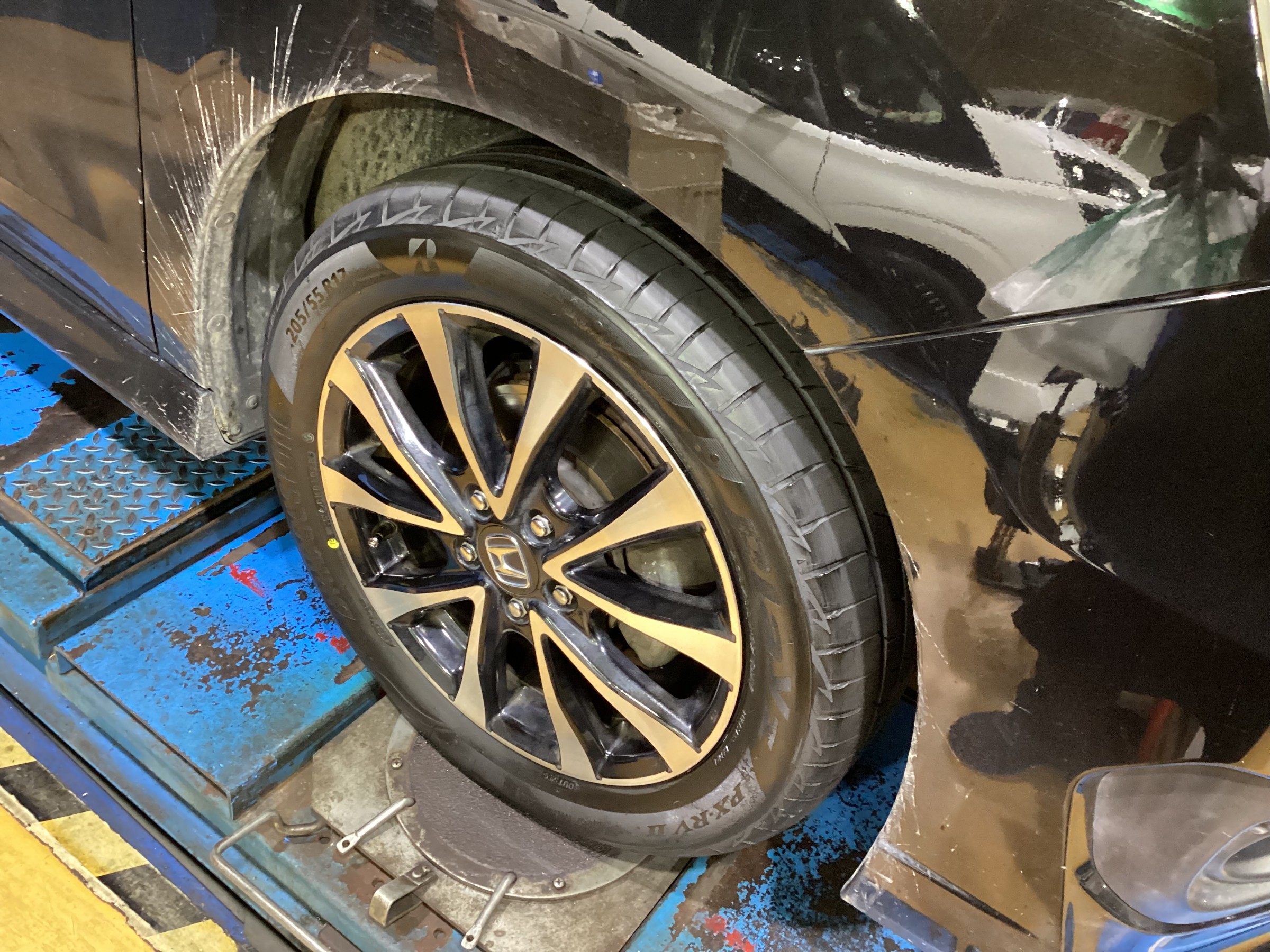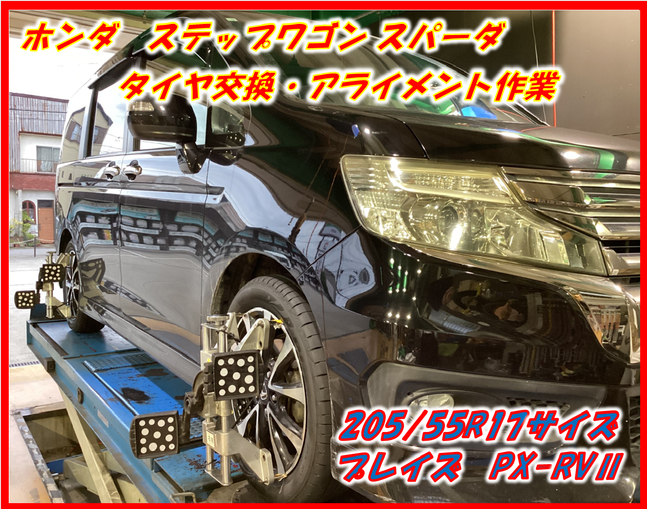 【作業事例】「ホンダ・ステップワゴン スパーダ」タイヤ交換作業(ブリヂストン プレイズPX-RVⅡ)・アライメント調整作業