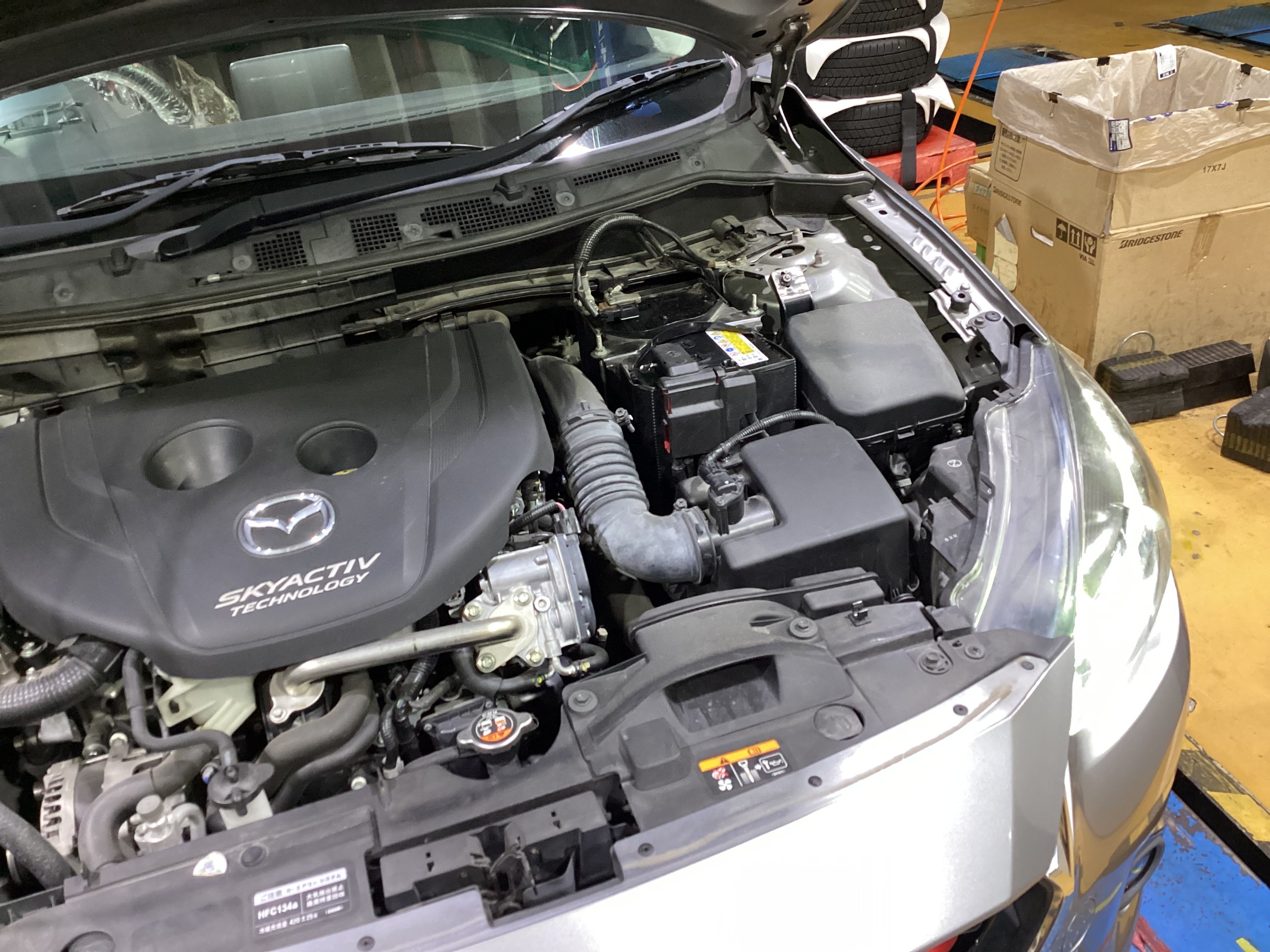 【作業事例】「マツダ・デミオ」バッテリー交換作業(エコロングセーブIS)