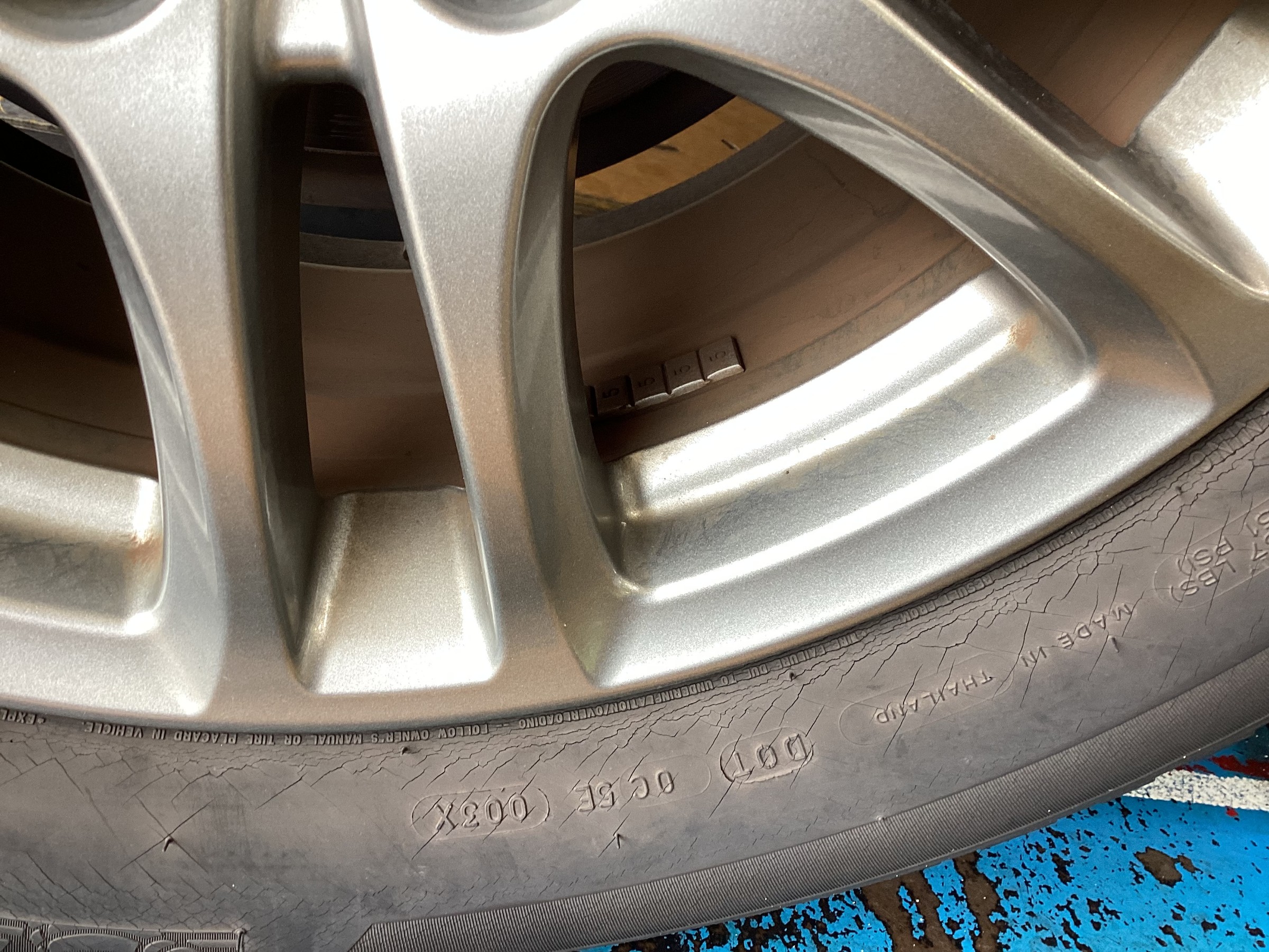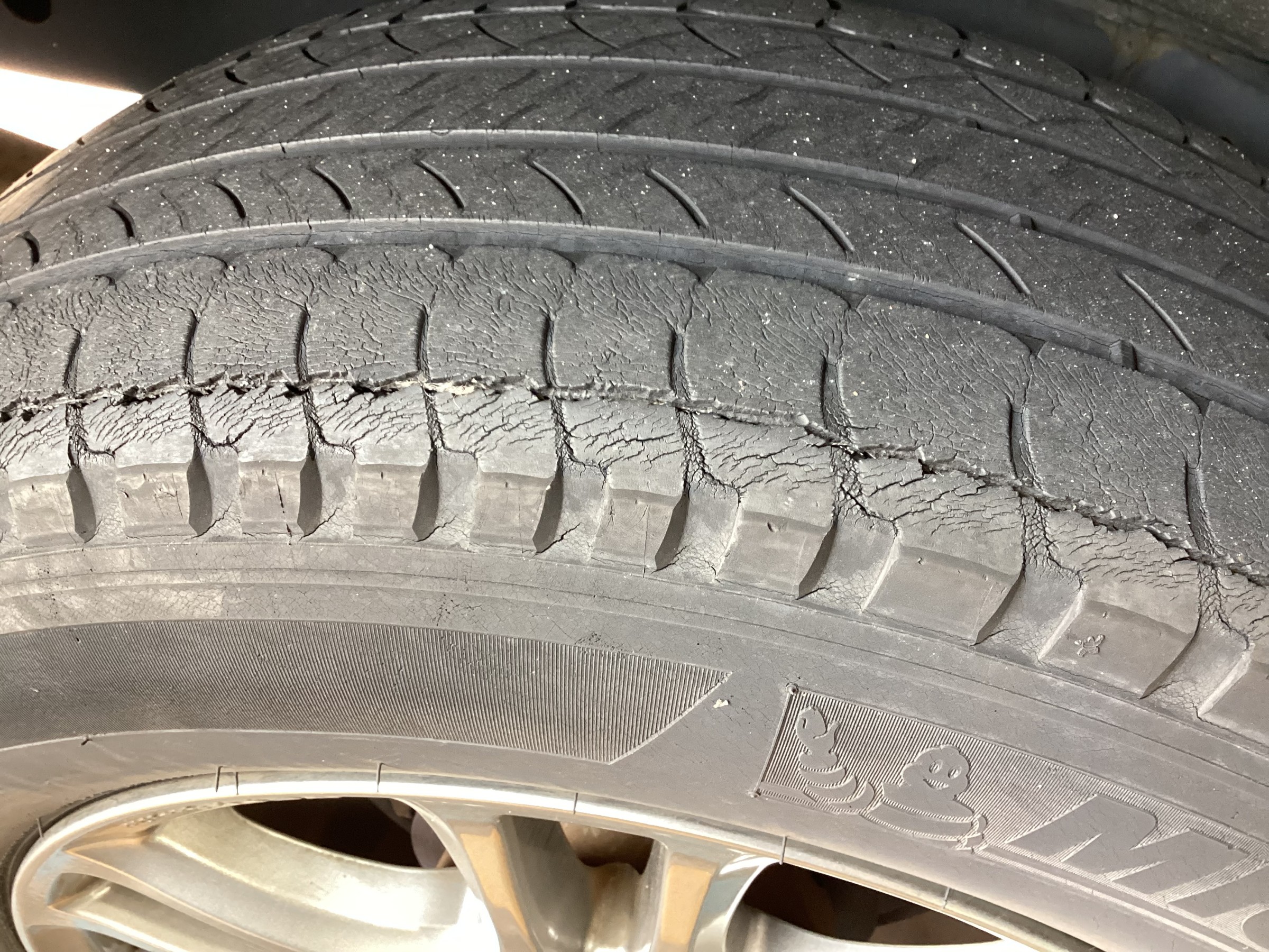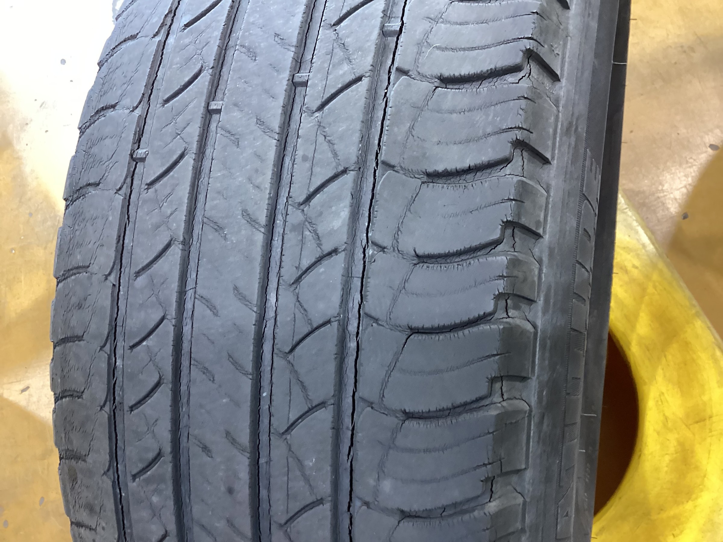 タイヤを点検させていただいた所、溝はまだ少し残っておりましたがかなり深いひび割れが出ておりましたの