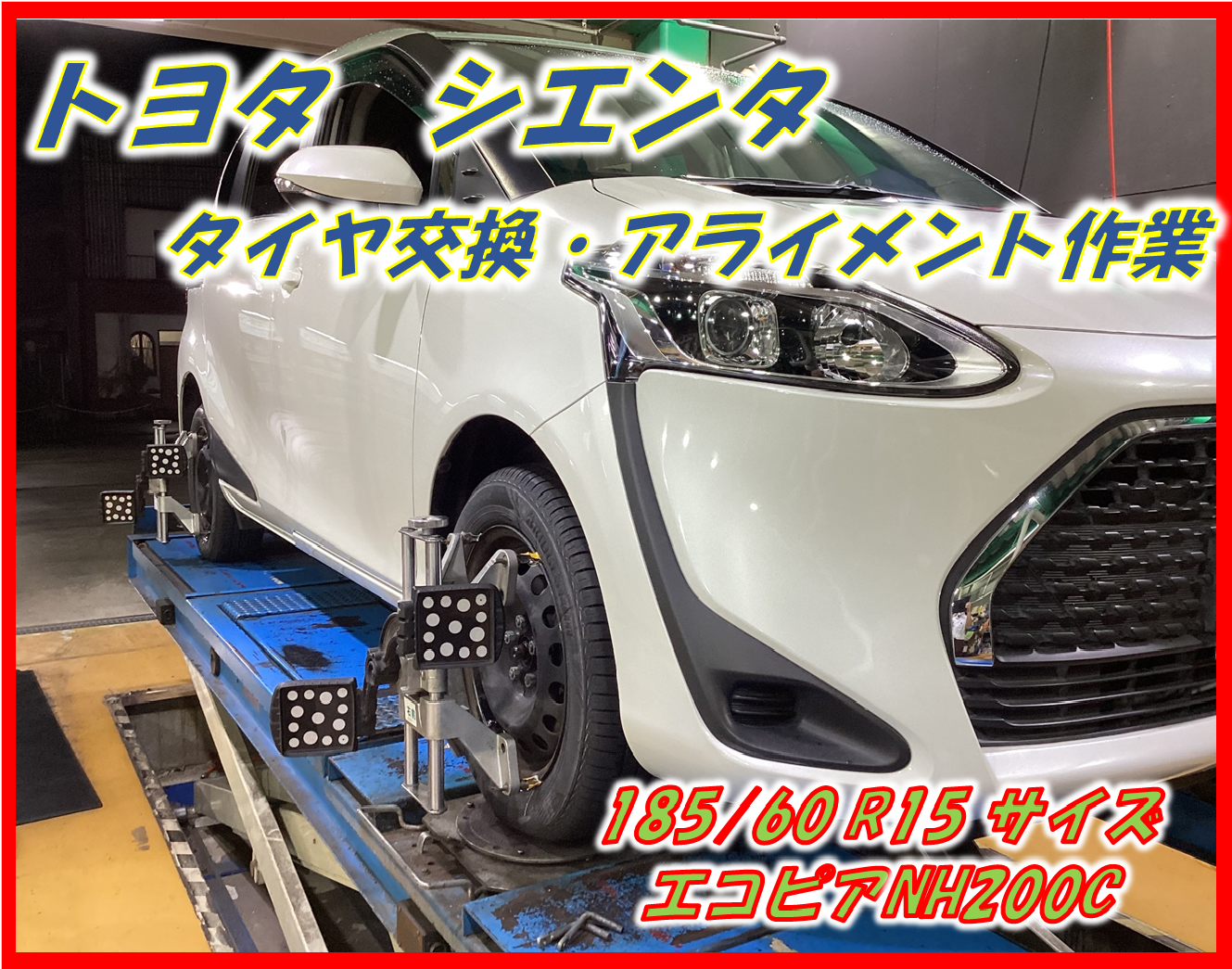 作業事例】「トヨタ シエンタ」夏用タイヤ交換・アライメント作業(ブリヂストン エコピアNH200C)