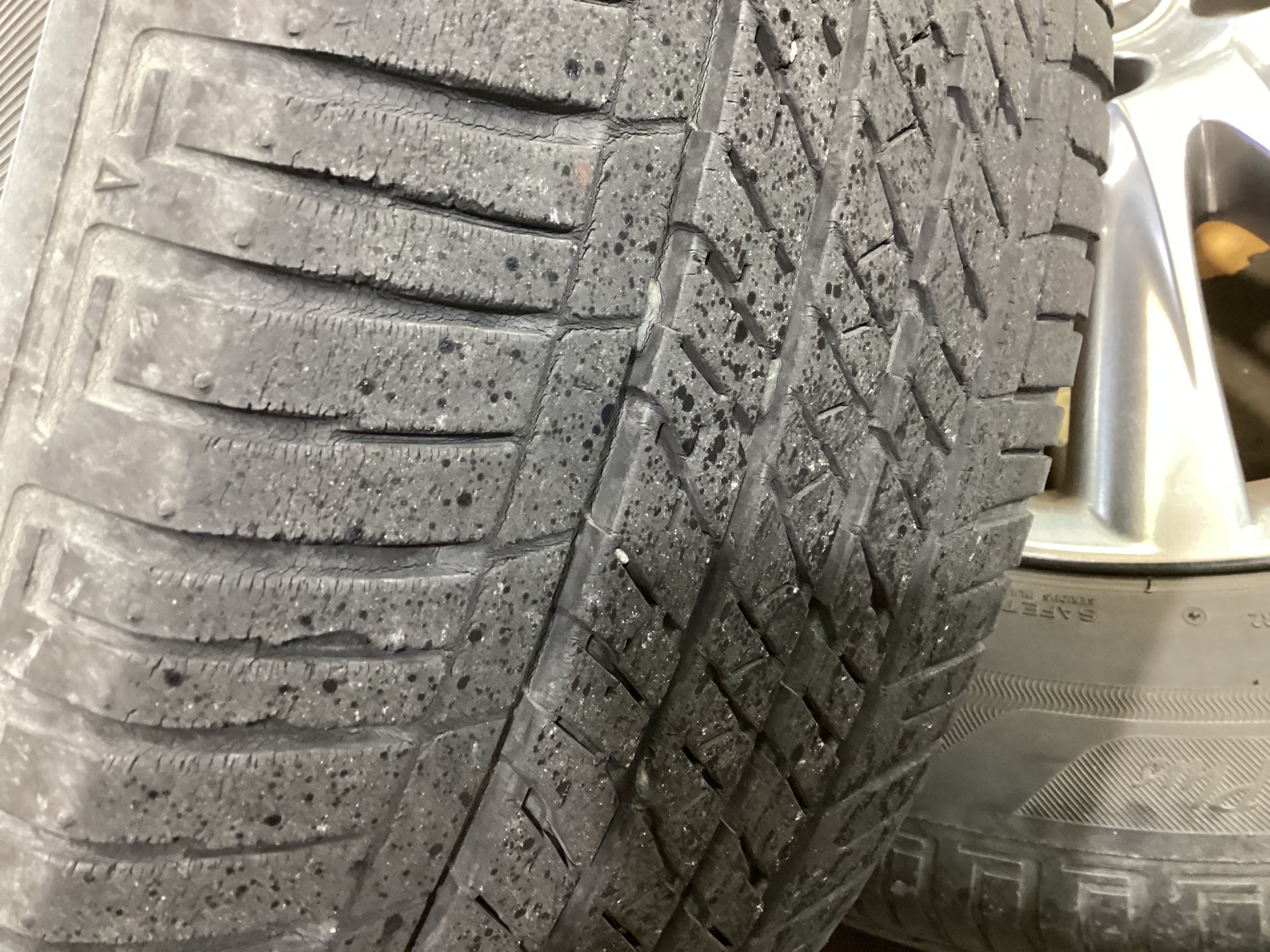 タイヤ点検させていただいた所、溝も少なくひび割れが全体に出ていた為、説明し交換させていただきました。