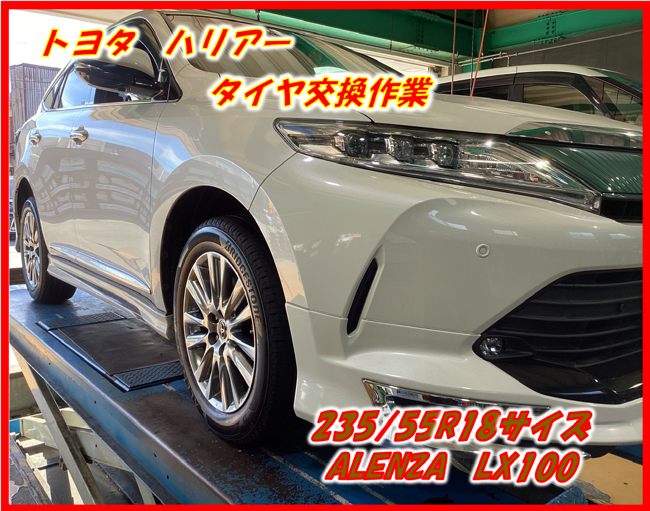 【作業事例】「トヨタ・ハリアー」夏用タイヤ交換作業(ブリヂストン ALENZA LX100)