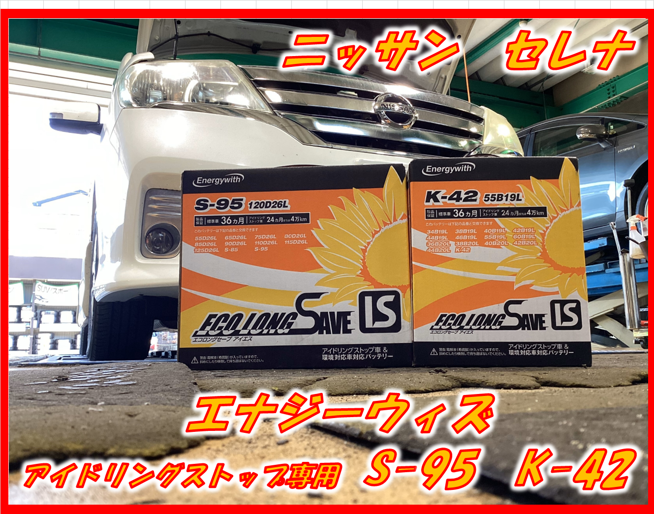 バッテリー:Energywith ECO LONG SAVE IS(エナジーウィズ エコロングセーブIS) アイドリングストップ車用バッテリー S-95 120D26L K−42 55B19L