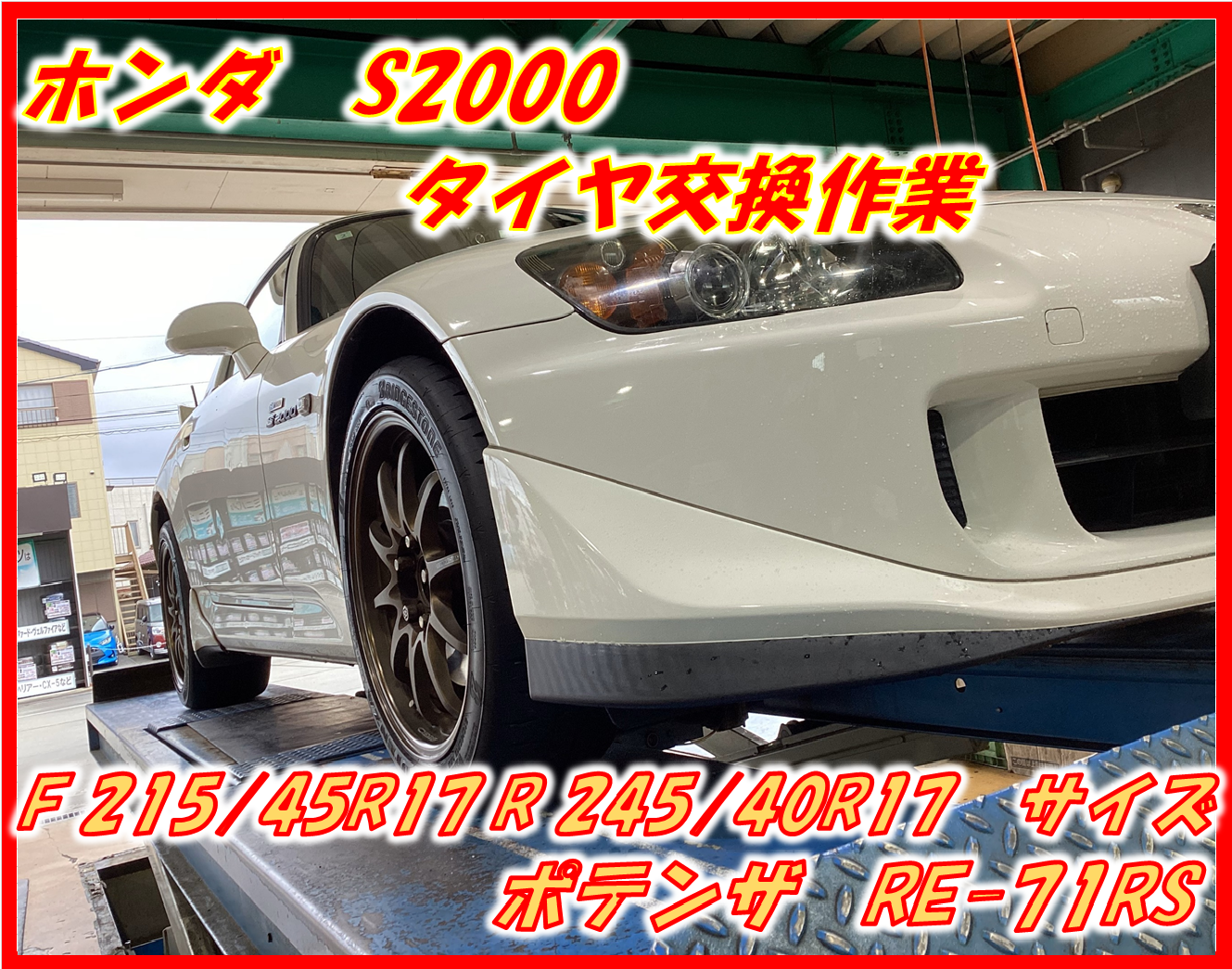 【作業事例】「ホンダ S2000」夏用タイヤ交換作業(ブリヂストン POTENZA RE-71RS)