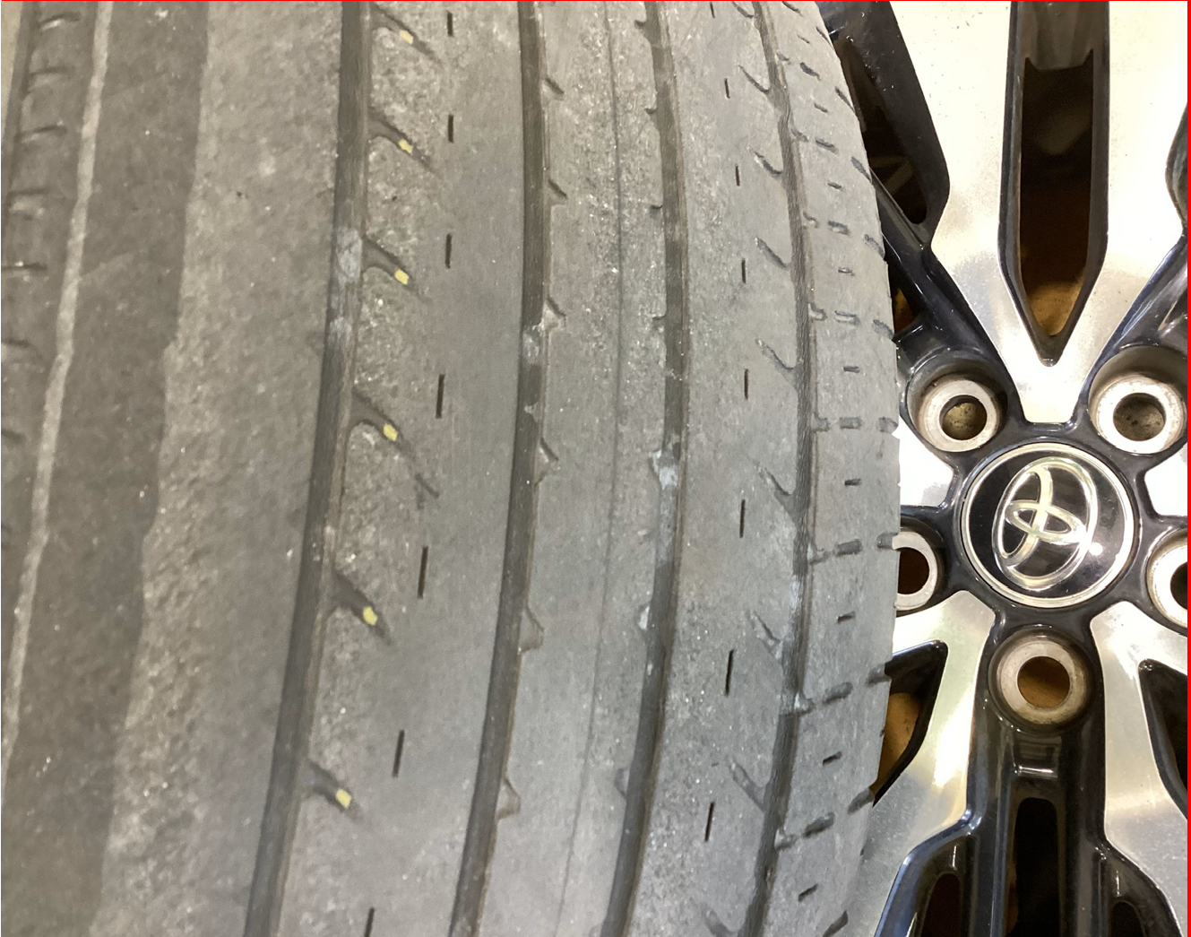 またタイヤの溝を確認させていただいた際にタイヤの偏った減り方になっておりましたので、