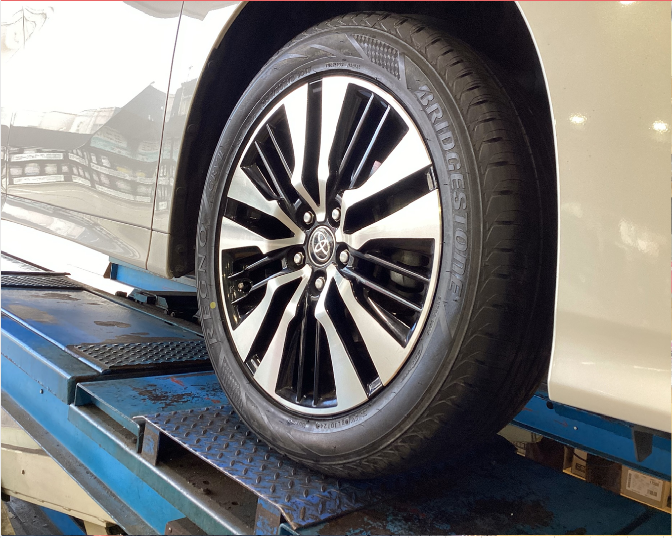 【作業事例】「トヨタ・アルファード」夏用タイヤ交換・アライメント作業(ブリヂストン レグノGRVⅡ)