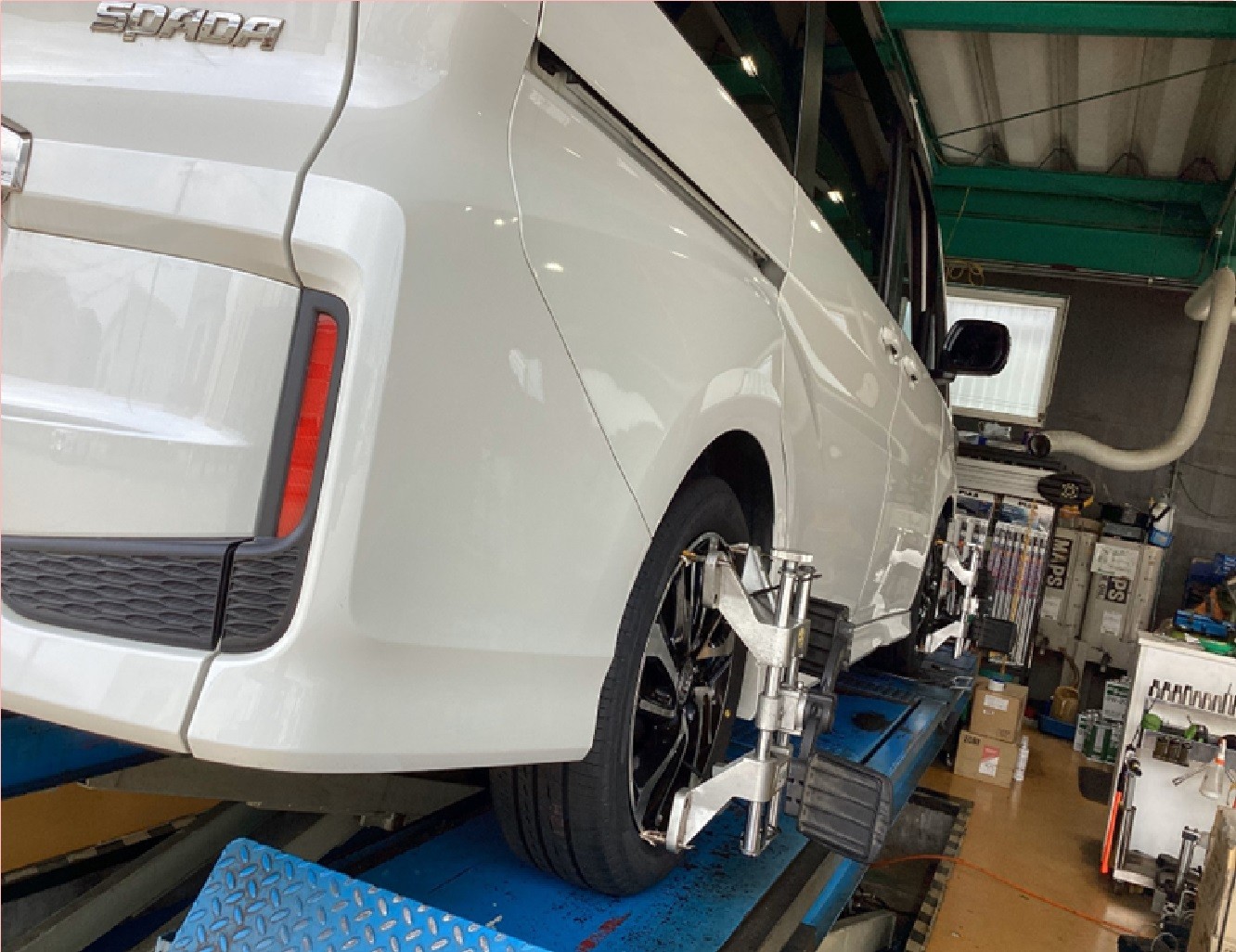 タイヤの寿命を延ばしたり、走行の安定さを向上させたりする作業:「アライメント調整作業」も同時に実施させていただきました。