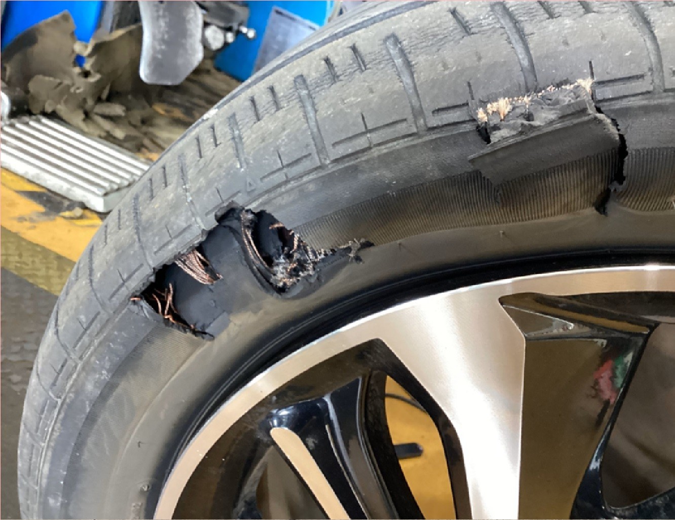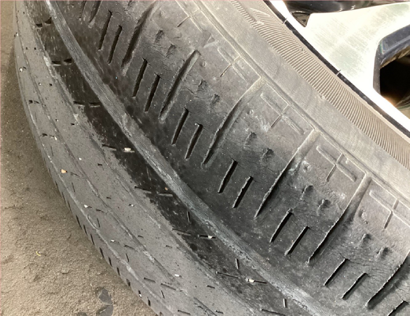 バーストの影響でお車のタイヤの角度のズレなども出ている可能性もある為、