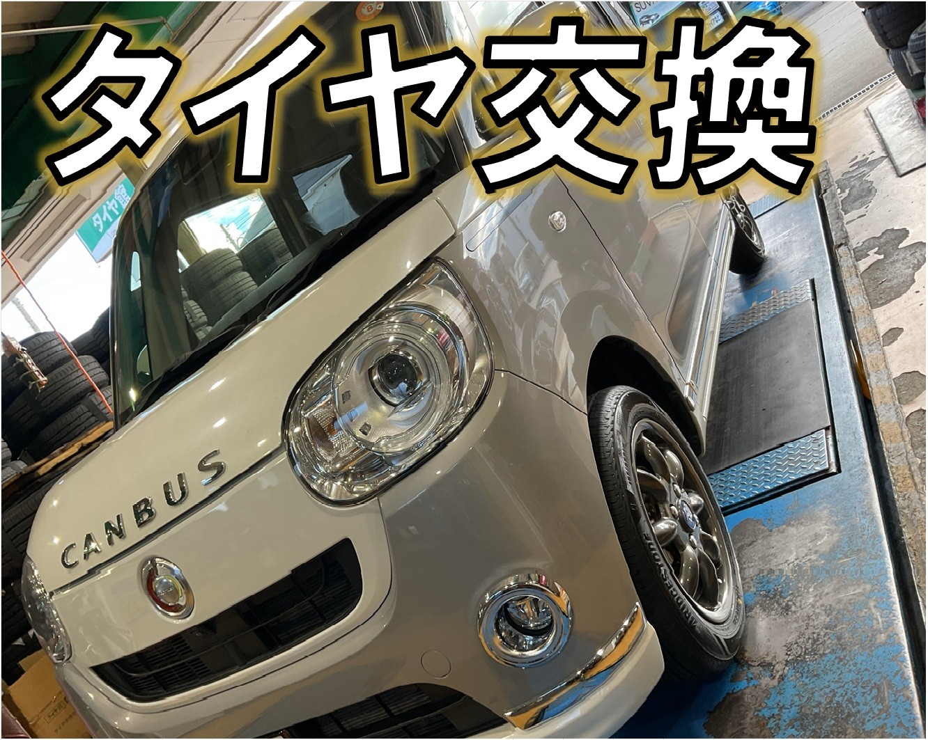 【作業事例】「ダイハツ・キャンバス」夏用タイヤ交換作業(ブリヂストン レグノ GR-XⅢ)