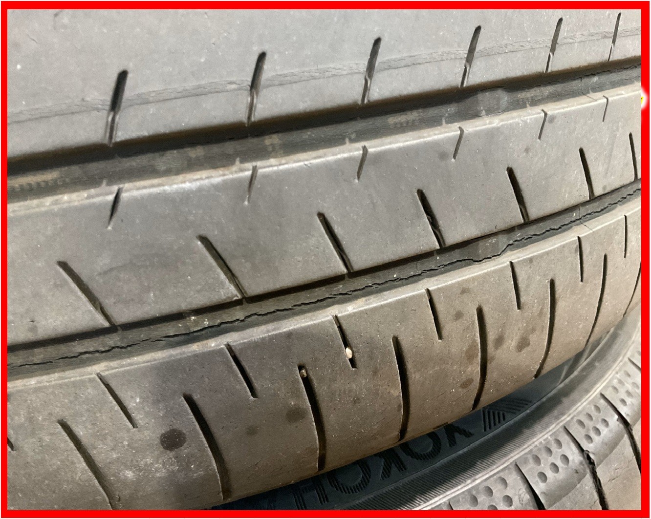 点検したところタイヤも溝はまだが少し残っておりましたが、溝にかなりひび割れがでておりましたのでお客様にも確認していただき、安全のために4本とも交換させていただきました。