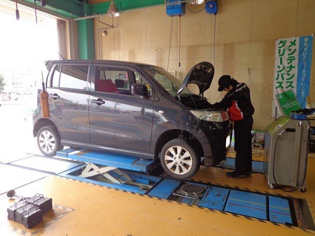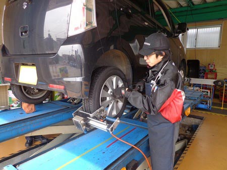 スズキ ワゴンRスティングレー タイヤ交換+アライメント ポスト 2015年2月24日 こんにちは!愛知県西尾市にあるタイヤ館西尾です。スズキワゴンRスティングレー(155/65R14)のタイヤ交換です。約6年弱使用で、総走行距離が約3万2000km。ここ数日ワゴンRスティングレーのご来店が続きました。今回も交換するタイヤは“ネクストリーエコピア”ブリヂストンのスタンダード低燃費タイヤです。もちろん今回もタイヤ長持ちにつながるアライメントも実施です。 担当:濱口