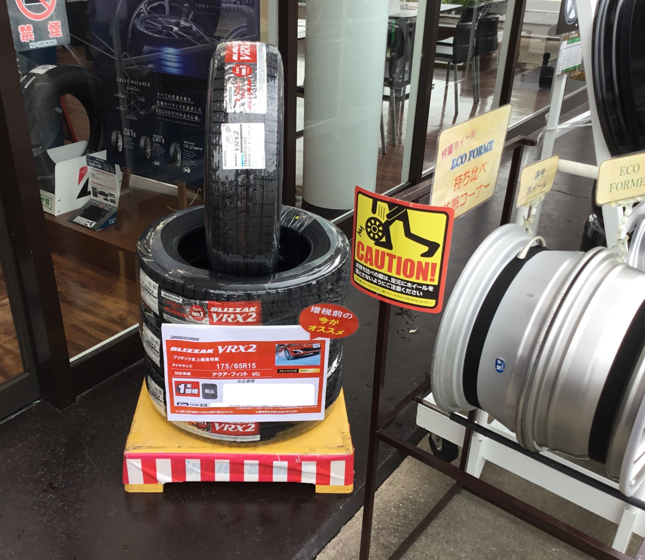 店頭にスタッドレスタイヤを展示致しました(^o^)