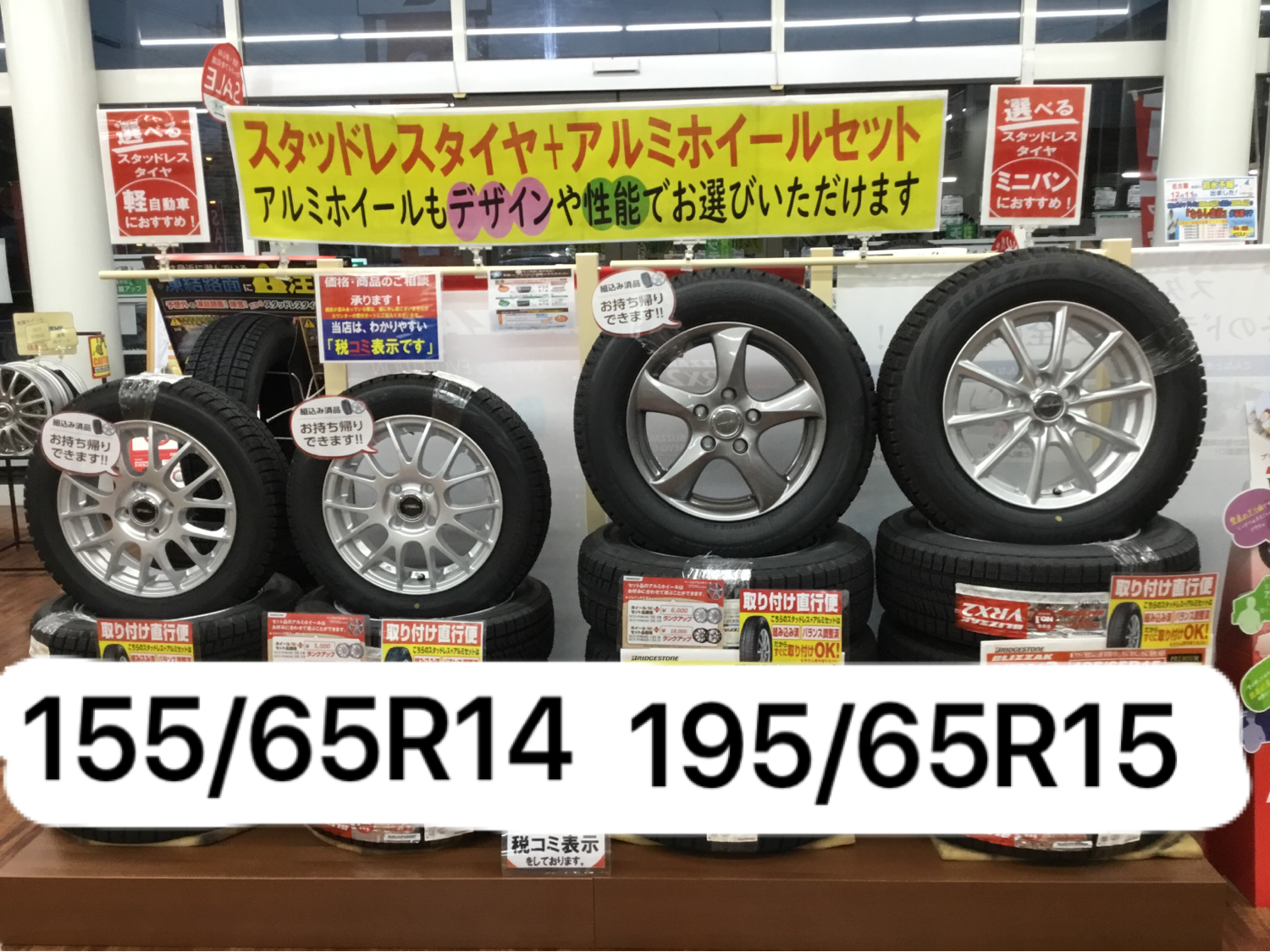 スタッドレスタイヤ 組み込み品のお持ち帰りやってます!!