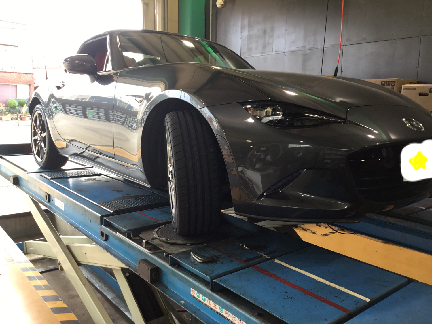 本日は当店で「ロードスターにポテンザS007Aを装着、アライメント調整」