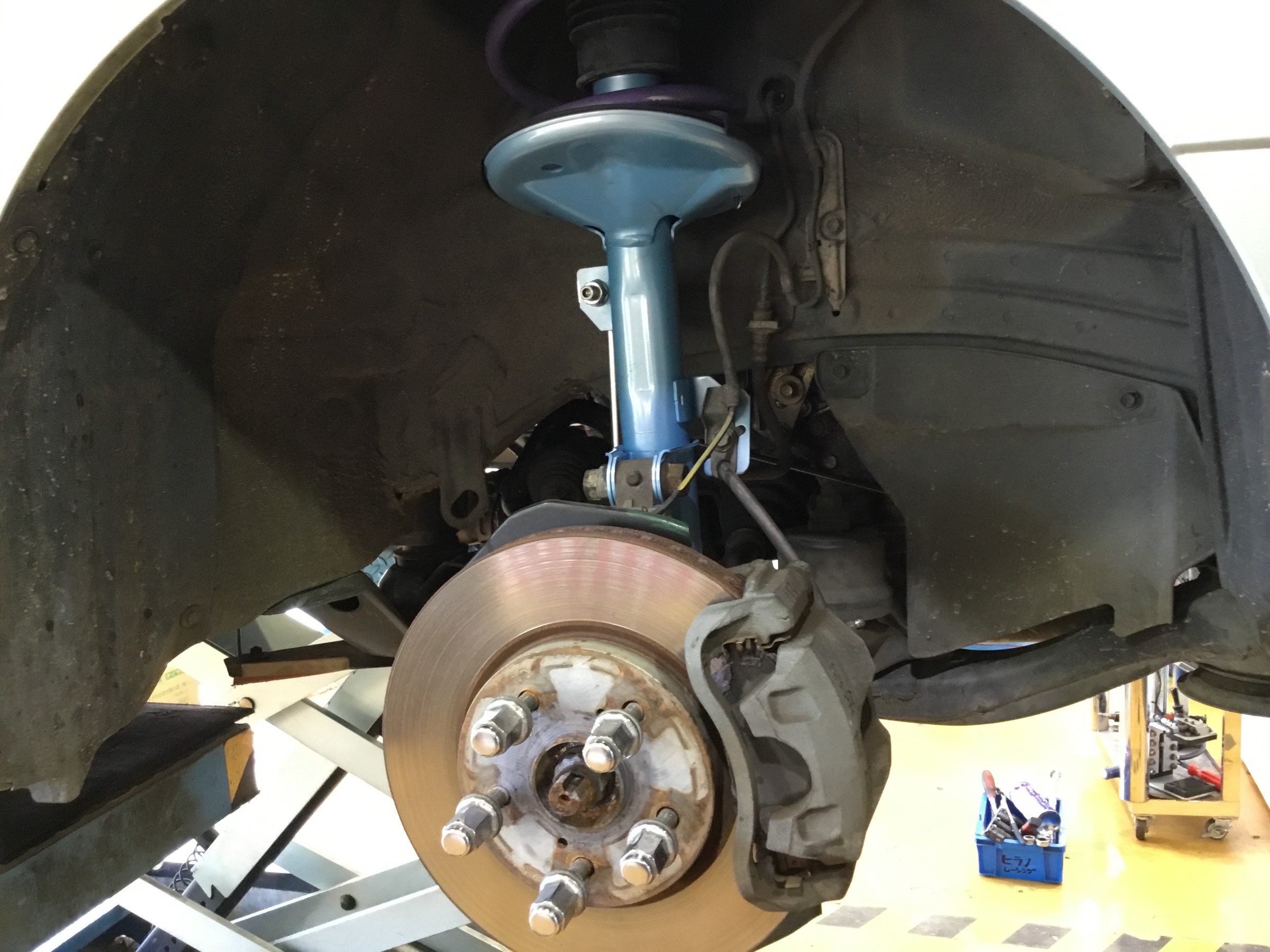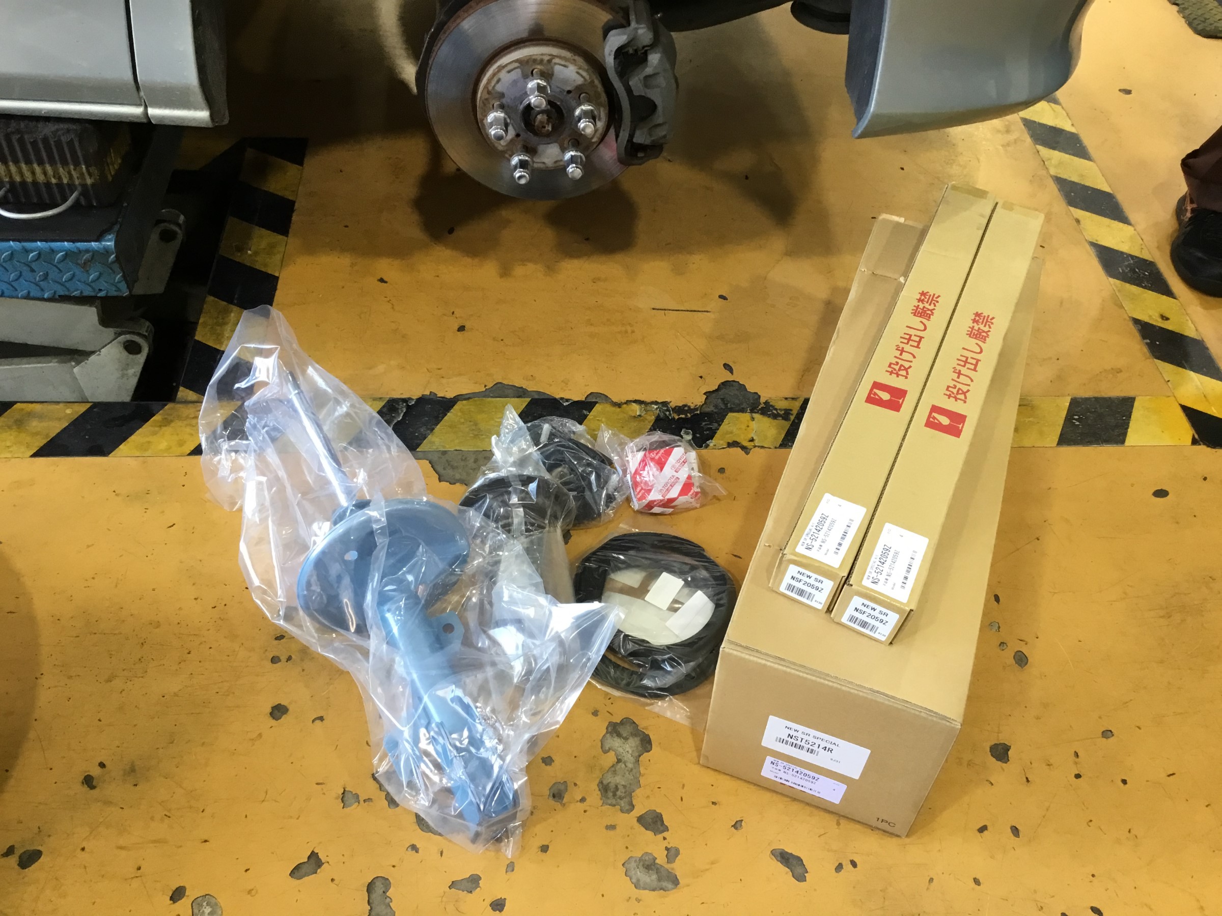新品のマウントやベアリング、ショックアブソーバーを組付け、