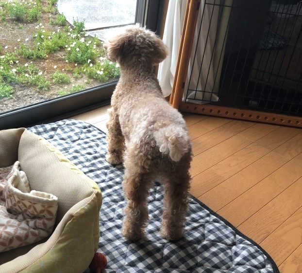 雨は散歩に連れて行ってもらえないから嫌いです"(-""-)"