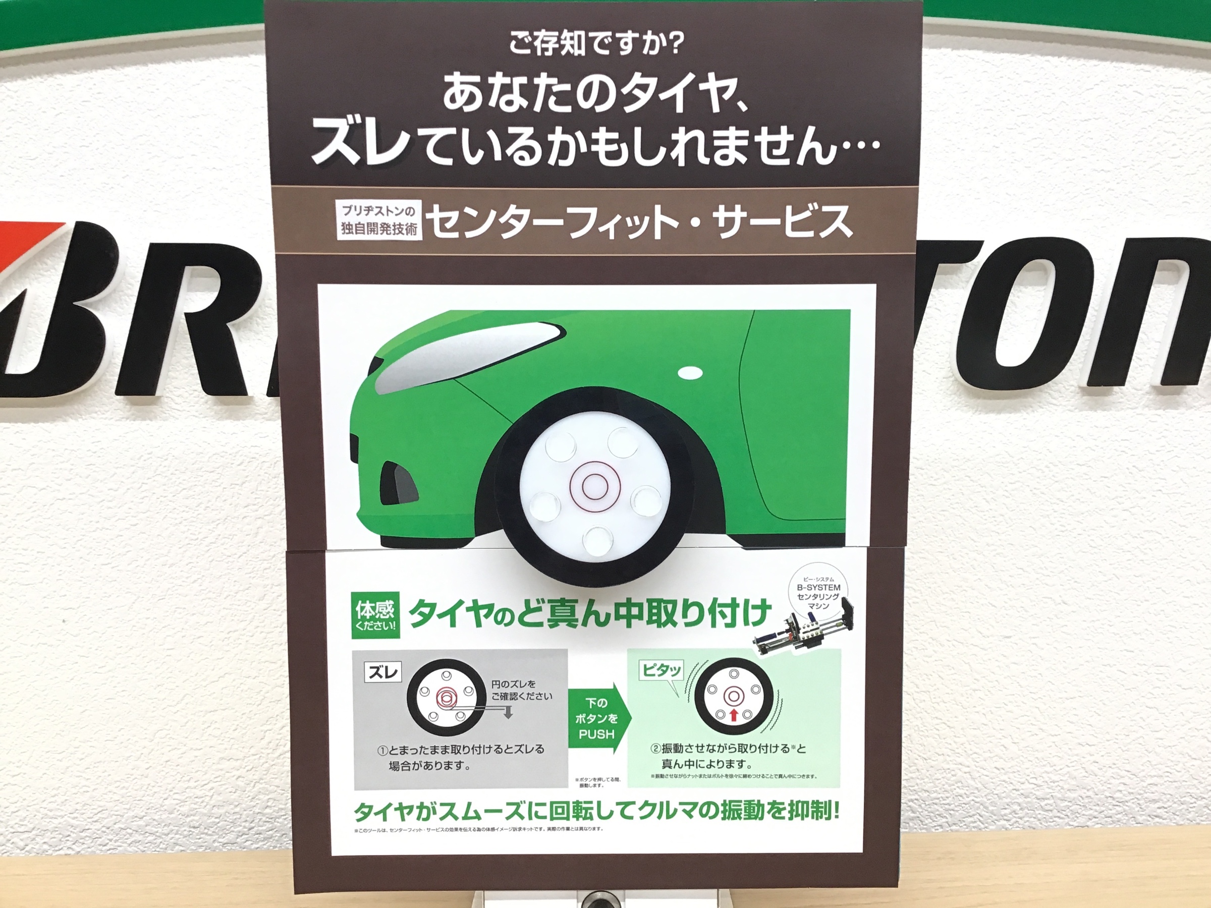 ブリヂストンのタイヤ専門店ではこのセンタリングマシンを使ってタイヤ取り付け時に中心を合わせるんです!!