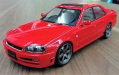 こんにちは!! (,,・θ・) ひよこ丸です 今年のプラモ今年の内に と云う事で 滑り込みセーフで 年内に完成致しました作品をご紹介致します ↓ アオシマの1/24 R34スカイラインです 新製品だけあって良い雰囲気です 顔つきも感じ出てますね! エンブレムと鍵穴が メタルインレットなのは アリガタヤアリ...
