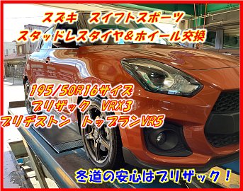 【作業事例】「スズキ・スイフトスポーツ」スタッドレスタイヤホイールセット装着作業(ブリヂストン BLIZZAK VRX3・TOPRUN VR5)