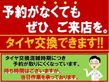 夏用タイヤからスタッドレスタイヤに履き替えのシーズンです。 タイヤ館では、現在、履き替えのご予約がかなり入っており、すでに予約一杯になっている日もありますので予約はお早めに。 履き替えのご予約は、ご覧いただいてます「タイヤ館ホームページ(Web)」からタイヤの履き替え予約が可能です...