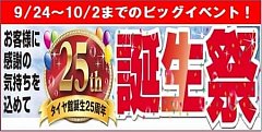 こんにちは! 西尾市のタイヤ館西尾です! 9月24日より、タイヤ館25周年を記念とした 大イベントを開催いたしておりました! たくさんのお客様にご来店いただき 感謝の気持ちでいっぱいです!! 誠にありがとうございました(*^_^*) またセール開催のご案内を 「お知らせ」「スタッフ日記」に...