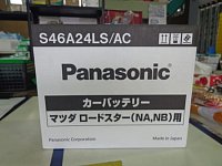 本日、ロードスターの バッテリー交換作業をさせていただきました! ロードスターのバッテリーは 専用のものを使わないといけません。 今回交換させていただいたバッテリーは、 パナソニックさんの「S46A24LS/AC」です。 箱に「ロードスター(NA,NB)用」と 書いてあるのがカッコイ...
