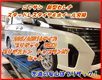 【作業事例】「ニッサン・セレナ」スタッドレスタイヤホイールセット装着作業(ブリヂストン BLIZZAK VRX3・TOPRUN M7)
