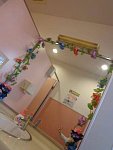 こんにちは、にしもりです。 女子トイレの鏡周りに あじさいを咲かせてみました。 不思議の国へ行けそう...