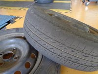 いつもお世話になります!愛知県西尾市にあるタイヤ館西尾です! タイヤのパンク修理依頼でご来店。 外面からはビスが刺さっているだけだったので、 パンク修理が可能と考えていたのですが・・・ タイヤをはずして内面を確認すると、 ビスがタイヤのビート部(タイヤとホイールを密着させる重要な部...