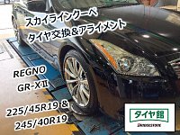 愛知県・西尾市・安城市・岡崎市・刈谷市・ 蒲郡市・碧南市・高浜市・幸田町 にお住まいの皆様、こんにちは! タイヤ館西尾の平野です。 今回は スカイラインクーペに レグノGRーXⅡを装着、 アライメント調整させて頂きました。 高速でお出掛けされる事が多い お客様で、 以前履いていた銘柄から変...