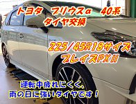 当HPをご閲覧頂きありがとうございます! 西尾市・安城市・岡崎市・刈谷市 蒲郡市・碧南市・高浜市・幸田町 にお住まいの皆様、こんにちは! 本日の作業は 【トヨタ G'sプリウスα 40系】 タイヤ交換です! 今回取り付けのタイヤは タイヤサイズ【225/45R18サイズ】 銘柄【プレイズ PXⅡ】 です! タ...