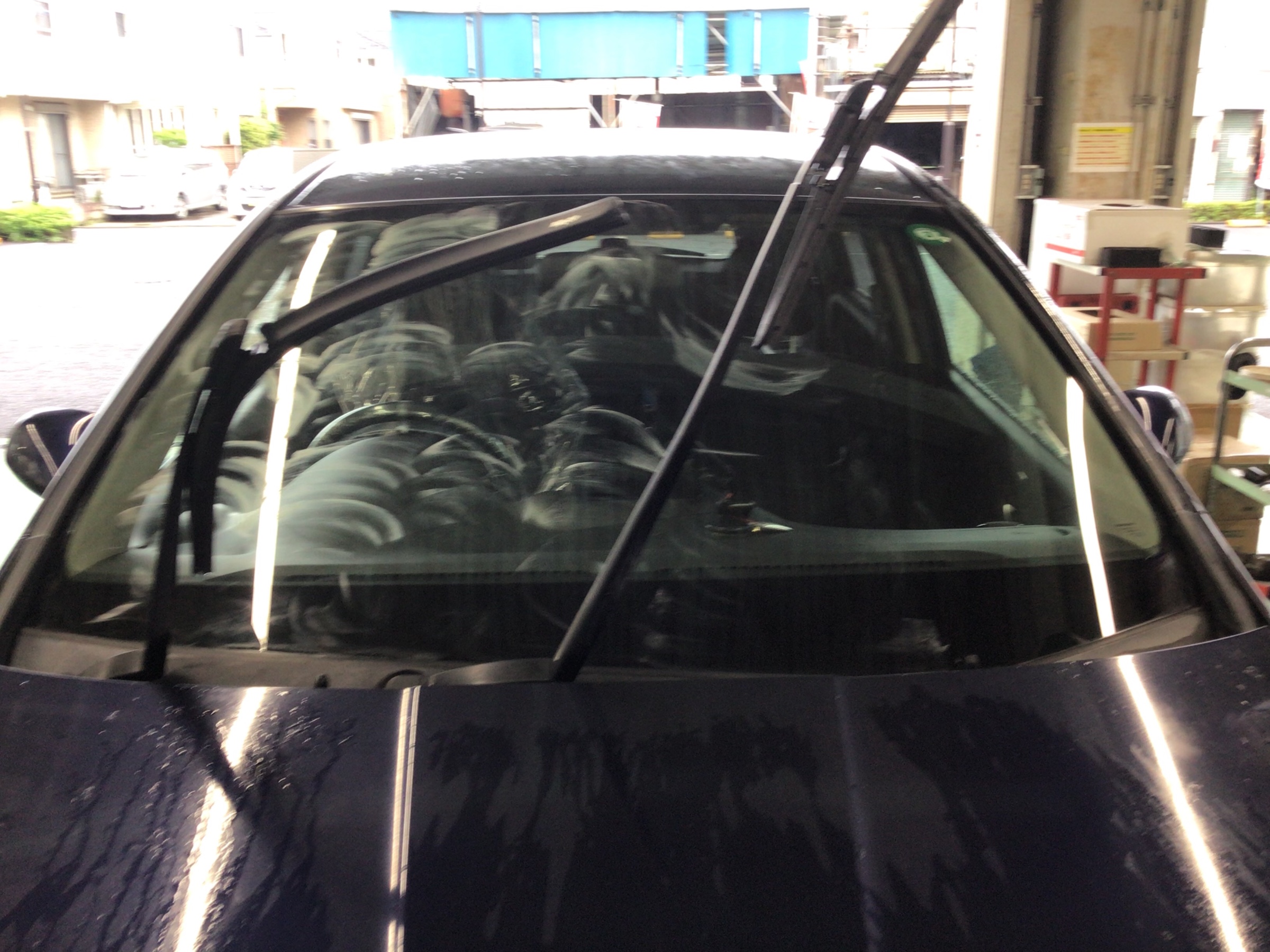 フロントガラス撥水施工の施工途中の画像です☆