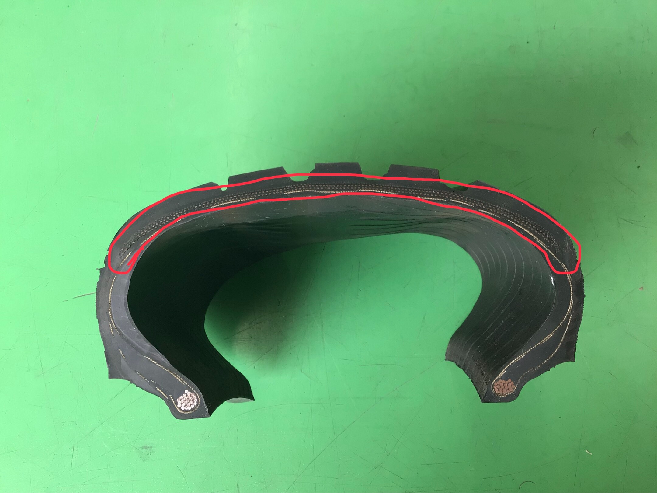 タイヤの中には金属のワイヤーで編み込まれたベルトが、