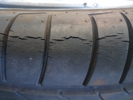 タイヤの表面に現れたひび割れ、年数経過によるゴムの劣化、残りミゾなどから
