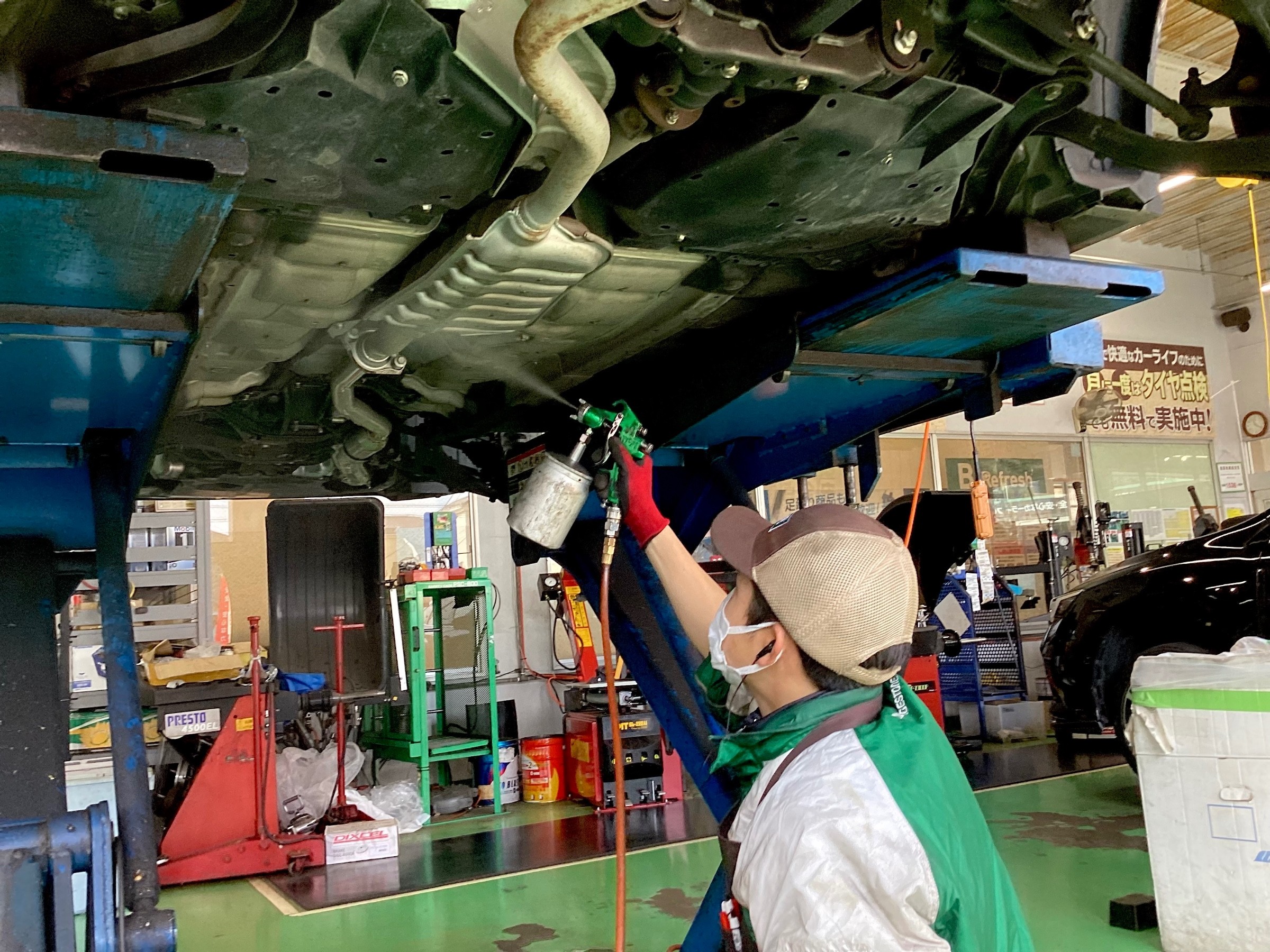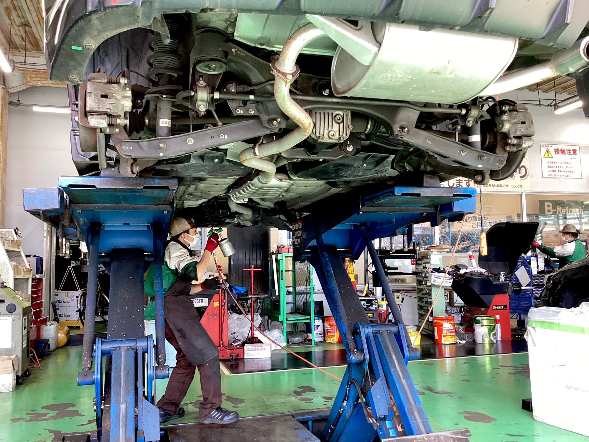 作業内容: タイヤ4本交換、マフラー防錆加工