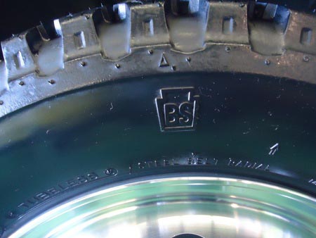 しかもタイヤのサイドウオールにはブリヂストンの旧ロゴ。